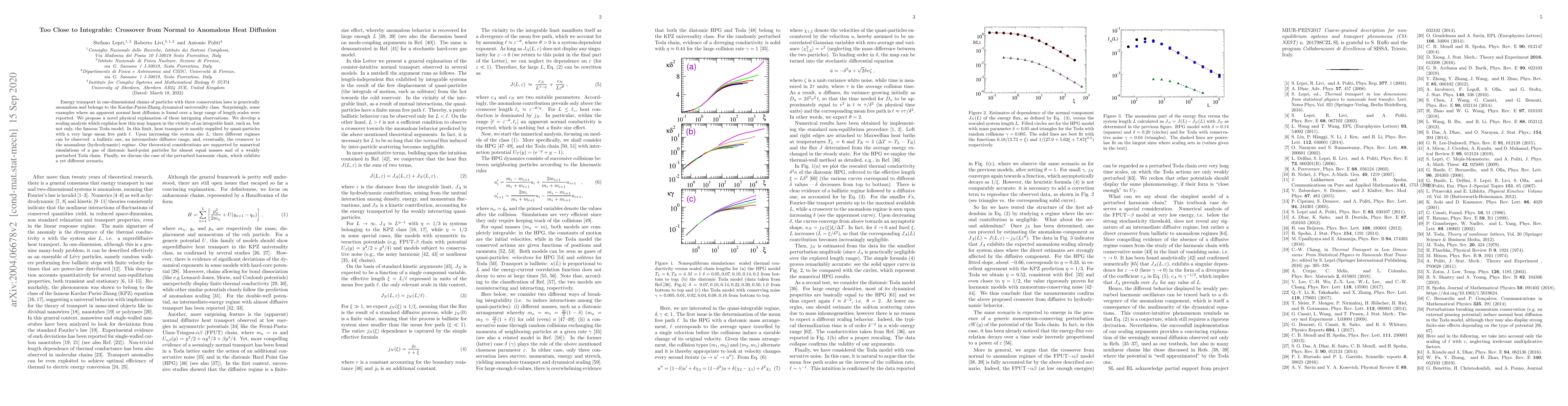 Development of a comprehensive scaling analysis to describe the crossover from normal to anomalous heat diffusion near integrable limits, supported by numerical simulations.