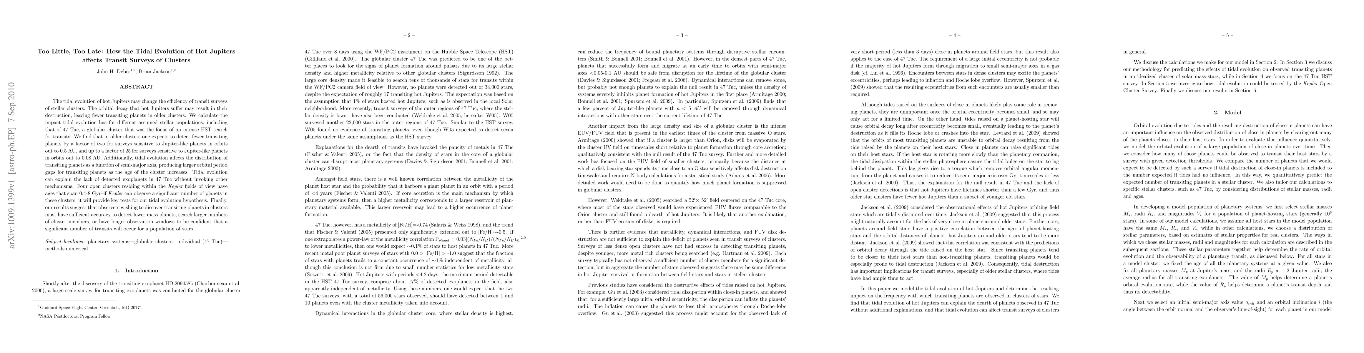 This paper examines how tidal evolution of hot Jupiters impacts transit surveys in stellar clusters, revealing that older clusters will detect fewer transiting planets due to orbital decay. It concludes that tidal evolution can explain the lack of detected exoplanets in 47 Tuc and suggests that future observations by Kepler may validate this hypothesis.