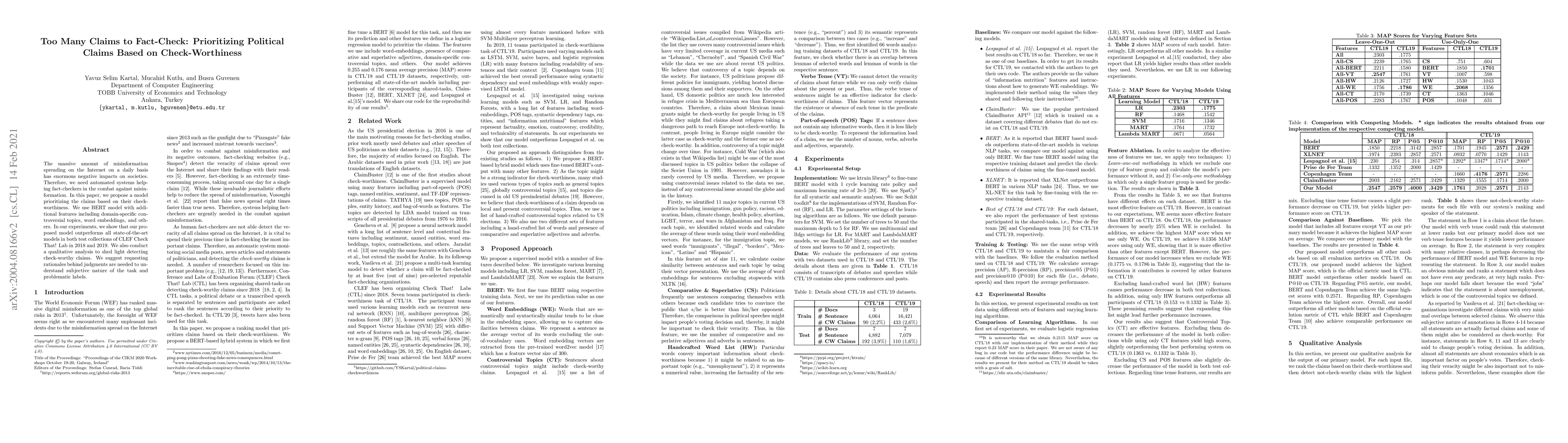This paper proposes a model using BERT and additional features to prioritize political claims based on their check-worthiness for fact-checking. The model outperforms existing methods in CLEF Check That! Lab tests, and a qualitative analysis highlights the need for rationales to better understand the subjective nature of the task.