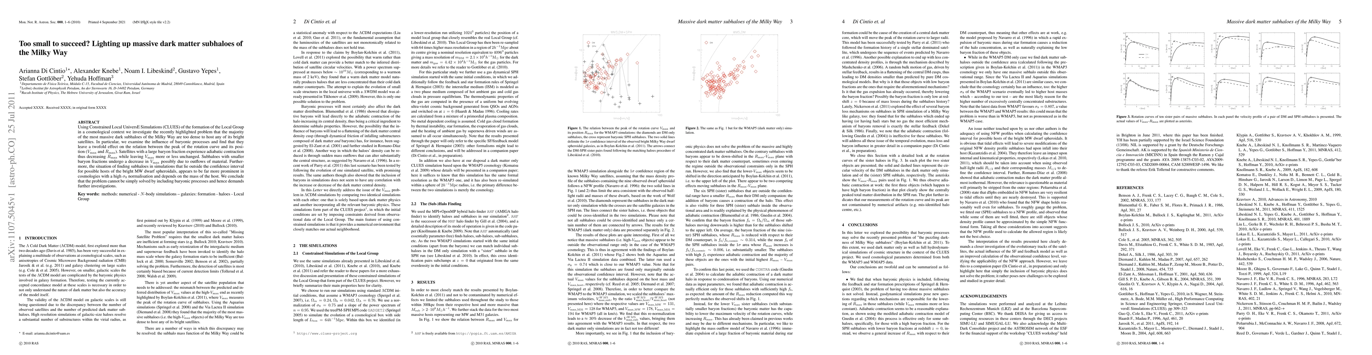 Using Constrained Local UniversE Simulations (CLUES) of the formation of the Local Group in a cosmological context we investigate the recently highlighted problem that the majority of the most massive dark subhaloes of the Milky Way are too dense to host any of its bright satellites. In particular, we examine the influence of baryonic processes and find that they leave a twofold effect on the relation between the peak of the rotation curve and its position (Vmax and Rmax). Satellites with a large baryon fraction experience adiabatic contraction thus decreasing Rmax while leaving Vmax more or less unchanged. Subhaloes with smaller baryon fractions undergo a decrease in Vmax possibly due to outflows of material. Furthermore, the situation of finding subhaloes in simulations that lie outside the confidence interval for possible hosts of the bright MW dwarf spheroidals, appears to be far more prominent in cosmologies with a high sigma8 normalisation and depends on the mass of the host. We conclude that the problem cannot be simply solved by including baryonic processes and hence demands further investigations.