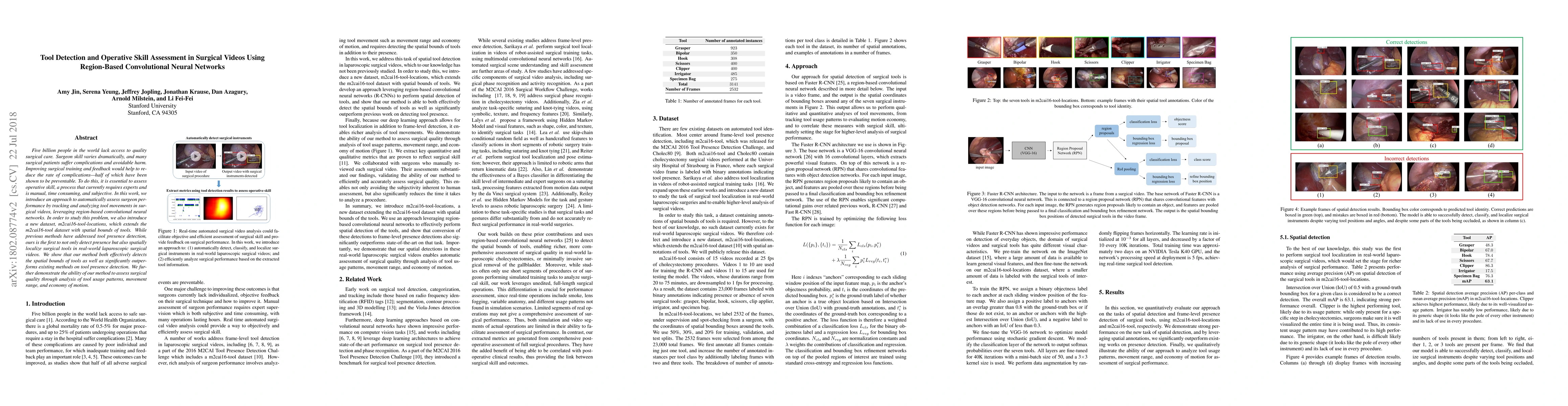 This paper presents a novel convolutional neural network approach for automatically assessing surgeon performance by tracking and analyzing tool movements in surgical videos, aiming to improve surgical training and reduce complications. The method effectively detects and spatially localizes surgical tools, outperforming existing methods, and analyzes tool usage patterns to evaluate operative skill.