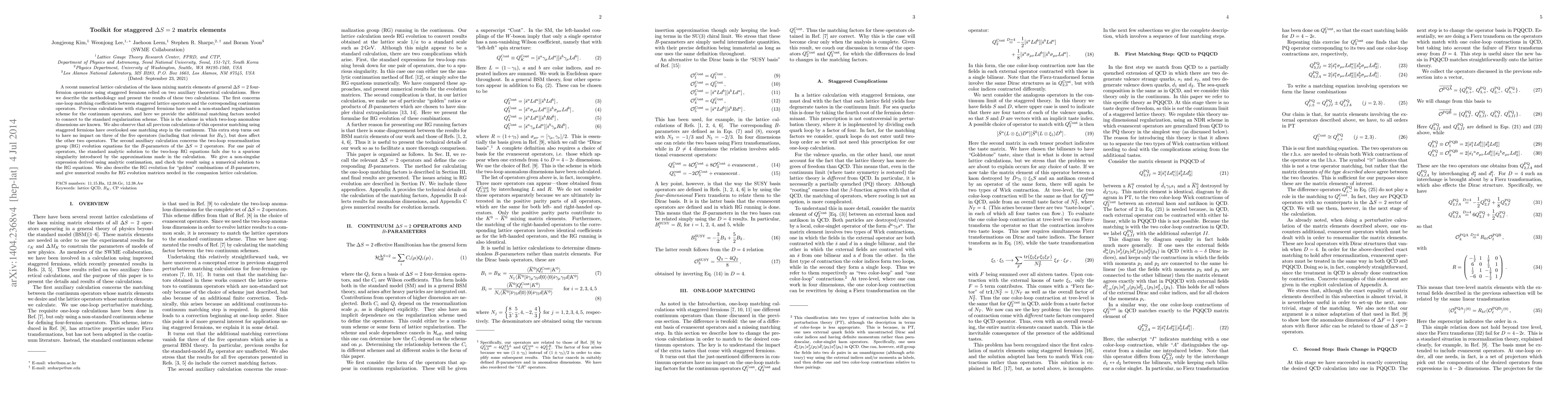 A recent numerical lattice calculation of the kaon mixing matrix elements of general $\Delta S=2$ four-fermion operators using staggered fermions relied on two auxiliary theoretical calculations. Here we describe the methodology and present the results of these two calculations. The first concerns one-loop matching coefficients between staggered lattice operators and the corresponding continuum operators. Previous calculations with staggered fermions have used a non-standard regularization scheme for the continuum operators, and here we provide the additional matching factors needed to connect to the standard regularization scheme. This is the scheme in which two-loop anomalous dimensions are known. We also observe that all previous calculations of this operator matching using staggered fermions have overlooked one matching step in the continuum. This extra step turns out to have no impact on three of the five operators (including that relevant for $B_K$), but does affect the other two operators. The second auxiliary calculation concerns the two-loop renormalization group (RG) evolution equations for the $B$-parameters of the $\Delta S=2$ operators. For one pair of operators, the standard analytic solution to the two-loop RG equations fails due to a spurious singularity introduced by the approximations made in the calculation. We give a non-singular expression derived using analytic continuation, and check the result using a numerical solution to the RG equations. We also describe the RG evolution for "golden" combinations of $B$-parameters, and give numerical results for RG evolution matrices needed in the companion lattice calculation.