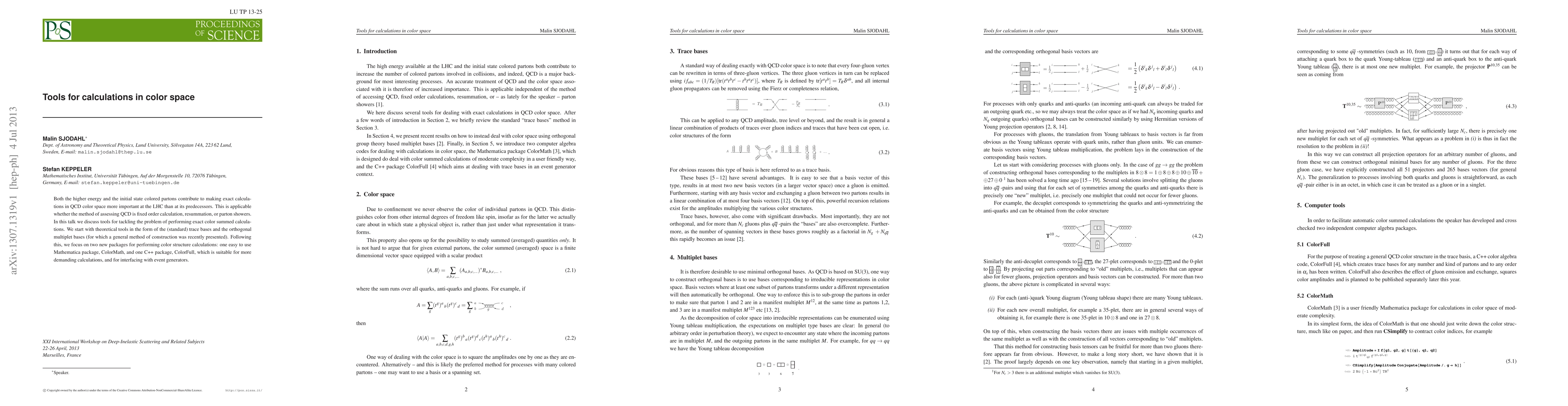 Both the higher energy and the initial state colored partons contribute to making exact calculations in QCD color space more important at the LHC than at its predecessors. This is applicable whether the method of assessing QCD is fixed order calculation, resummation, or parton showers. In this talk we discuss tools for tackling the problem of performing exact color summed calculations. We start with theoretical tools in the form of the (standard) trace bases and the orthogonal multiplet bases (for which a general method of construction was recently presented). Following this, we focus on two new packages for performing color structure calculations: one easy to use Mathematica package, ColorMath, and one C++ package, ColorFull, which is suitable for more demanding calculations, and for interfacing with event generators.