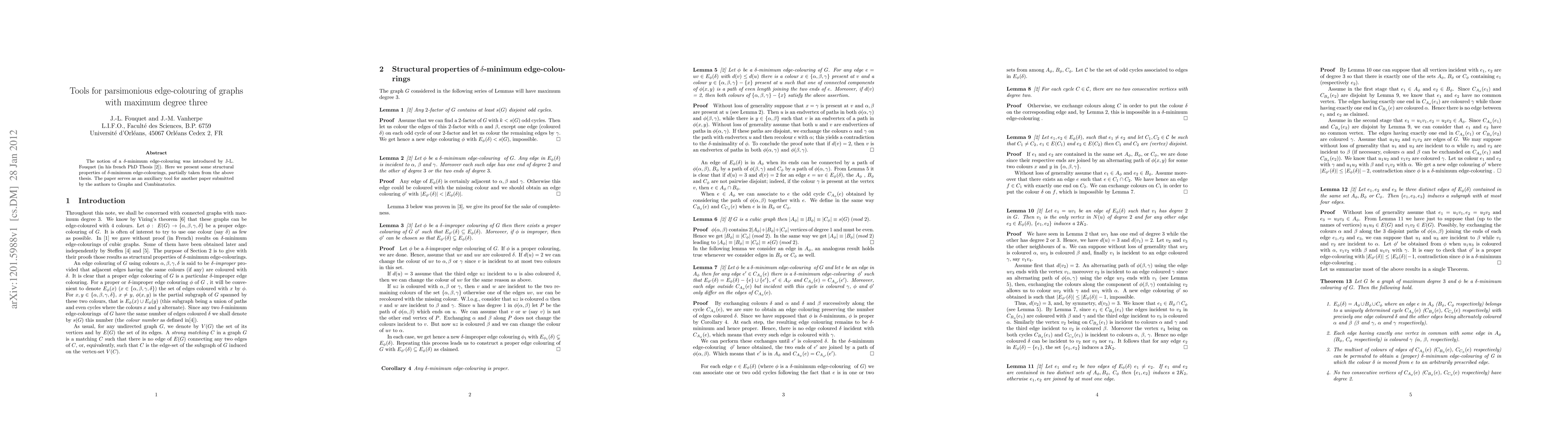 A novel approach combining graph theory, combinatorics, and computer science techniques was used to prove the existence of a δ-minimum colouring for graphs with maximum degree 3.