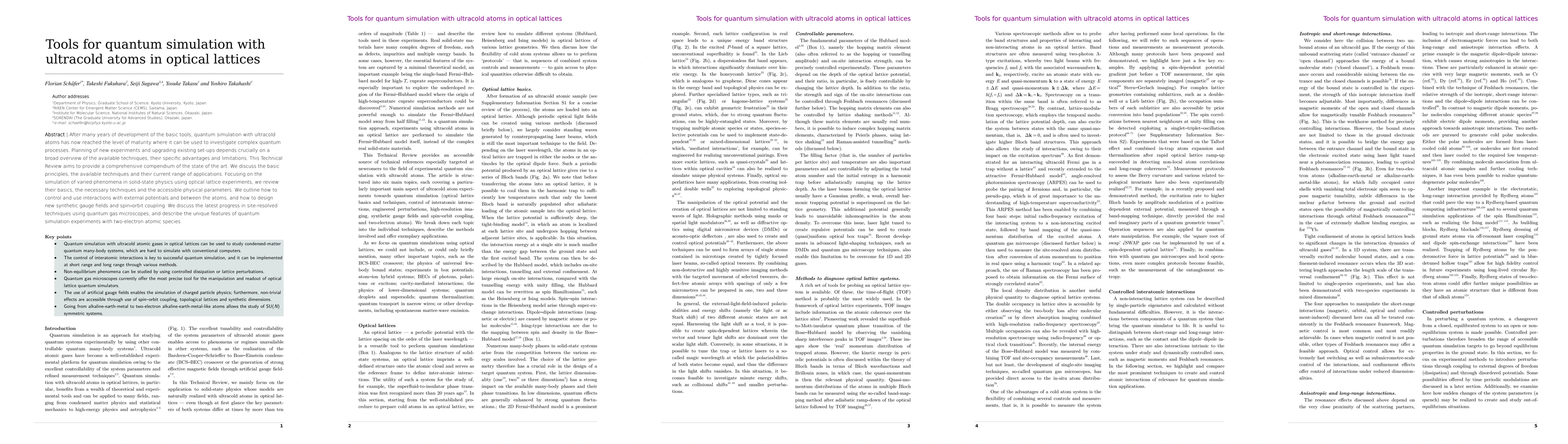 After many years of development of the basic tools, quantum simulation with ultracold atoms has now reached the level of maturity where it can be used to investigate complex quantum processes. Planning of new experiments and upgrading existing set-ups depends crucially on a broad overview of the available techniques, their specific advantages and limitations. This Technical Review aims to provide a comprehensive compendium of the state of the art. We discuss the basic principles, the available techniques and their current range of applications. Focusing on the simulation of varied phenomena in solid-state physics using optical lattice experiments, we review their basics, the necessary techniques and the accessible physical parameters. We outline how to control and use interactions with external potentials and between the atoms, and how to design new synthetic gauge fields and spin-orbit coupling. We discuss the latest progress in site-resolved techniques using quantum gas microscopes, and describe the unique features of quantum simulation experiments with two-electron atomic species.