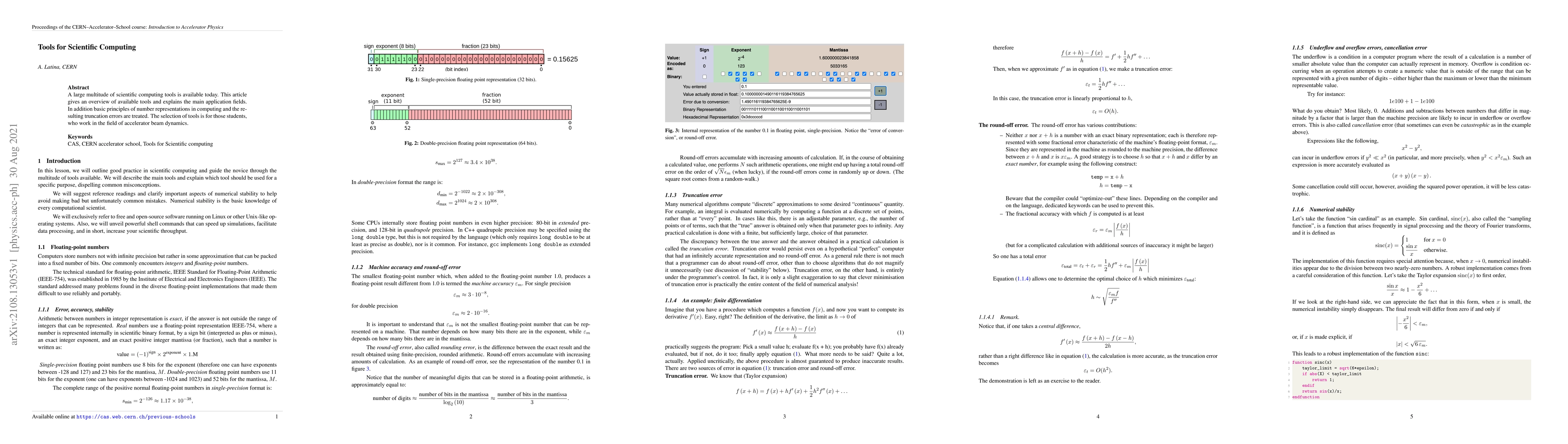 This article provides an overview of scientific computing tools, focusing on their application in accelerator beam dynamics, and discusses fundamental principles of number representations and associated truncation errors. It aims to assist students in selecting appropriate tools for their research.