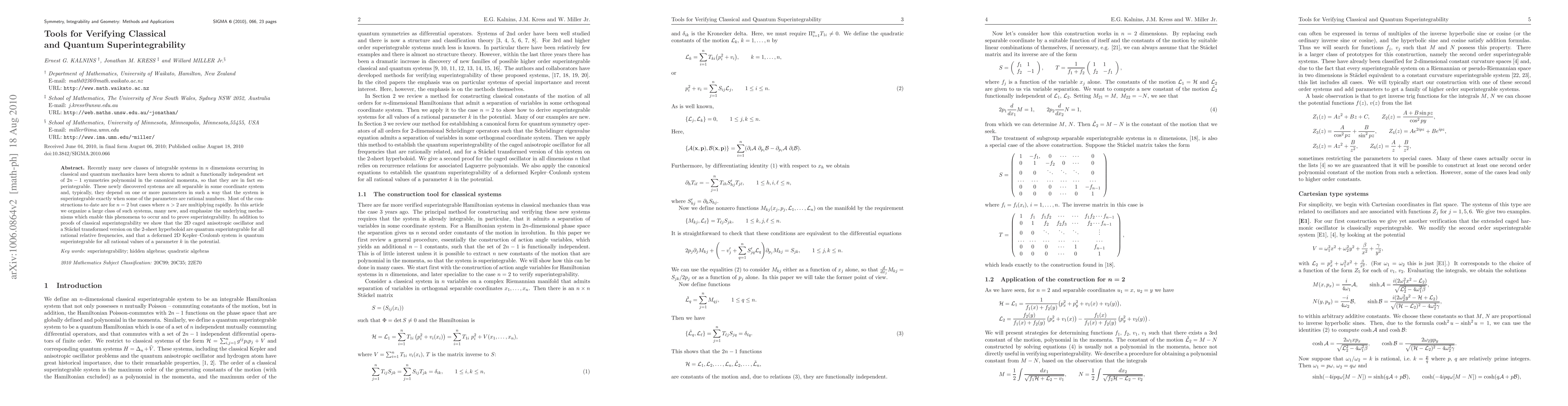 Recently many new classes of integrable systems in n dimensions occurring in classical and quantum mechanics have been shown to admit a functionally independent set of 2n-1 symmetries polynomial in the canonical momenta, so that they are in fact superintegrable. These newly discovered systems are all separable in some coordinate system and, typically, they depend on one or more parameters in such a way that the system is superintegrable exactly when some of the parameters are rational numbers. Most of the constructions to date are for n=2 but cases where n>2 are multiplying rapidly. In this article we organize a large class of such systems, many new, and emphasize the underlying mechanisms which enable this phenomena to occur and to prove superintegrability. In addition to proofs of classical superintegrability we show that the 2D caged anisotropic oscillator and a Stackel transformed version on the 2-sheet hyperboloid are quantum superintegrable for all rational relative frequencies, and that a deformed 2D Kepler-Coulomb system is quantum superintegrable for all rational values of a parameter k in the potential.