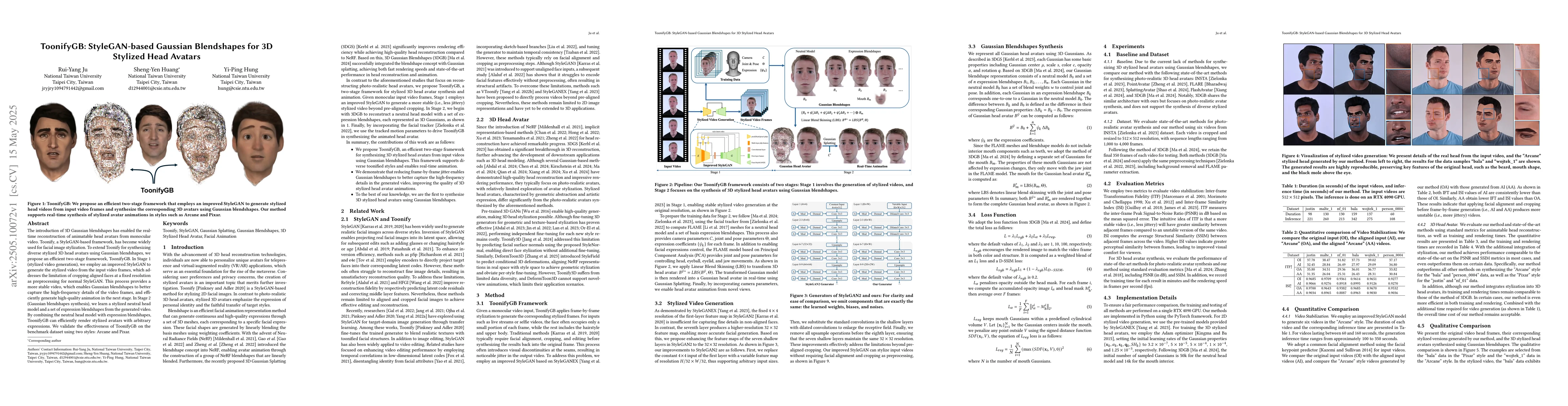 ToonifyGB combines StyleGAN-based video generation with Gaussian blendshapes synthesis to create diverse 3D stylized head avatars.