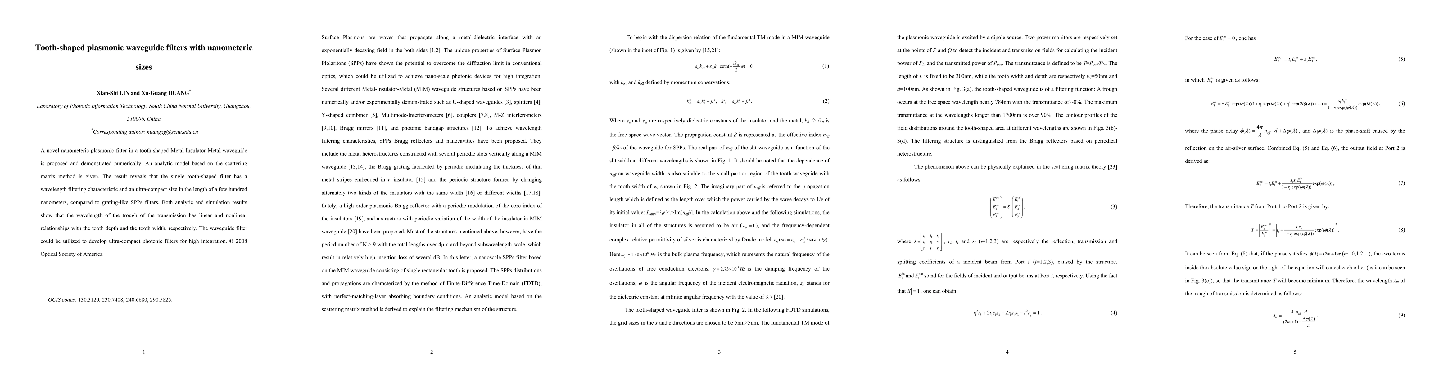 Researchers propose a nanometeric tooth-shaped plasmonic filter that offers ultra-compact size and wavelength filtering characteristics, with potential applications in high integration photonic filters.