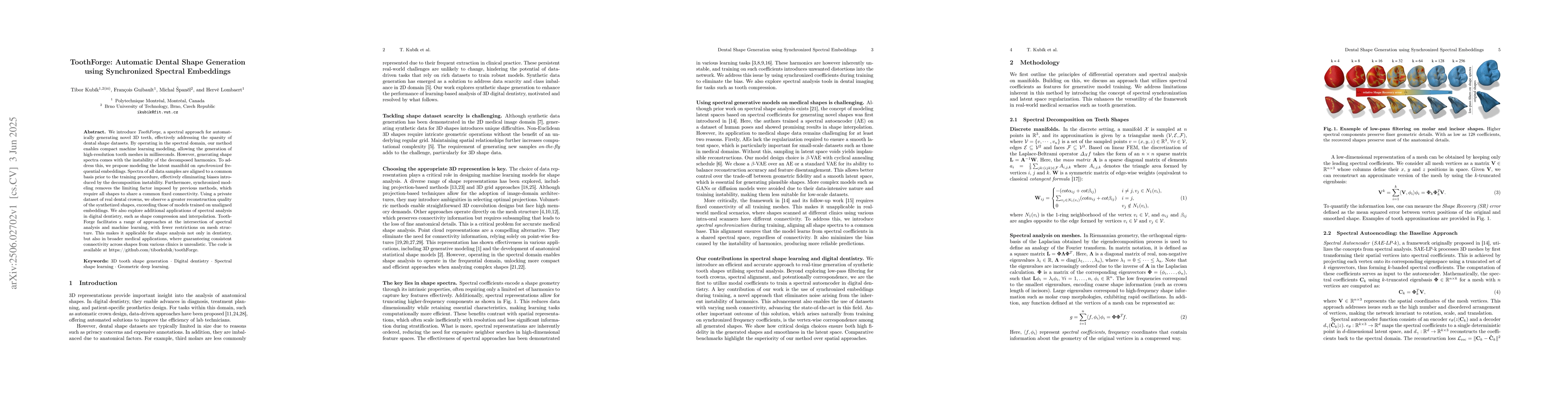 The research introduces ToothForge, a spectral approach for automatic 3D teeth generation using synchronized spectral embeddings, addressing sparsity in dental shape datasets and enabling high-resolution mesh creation in milliseconds.