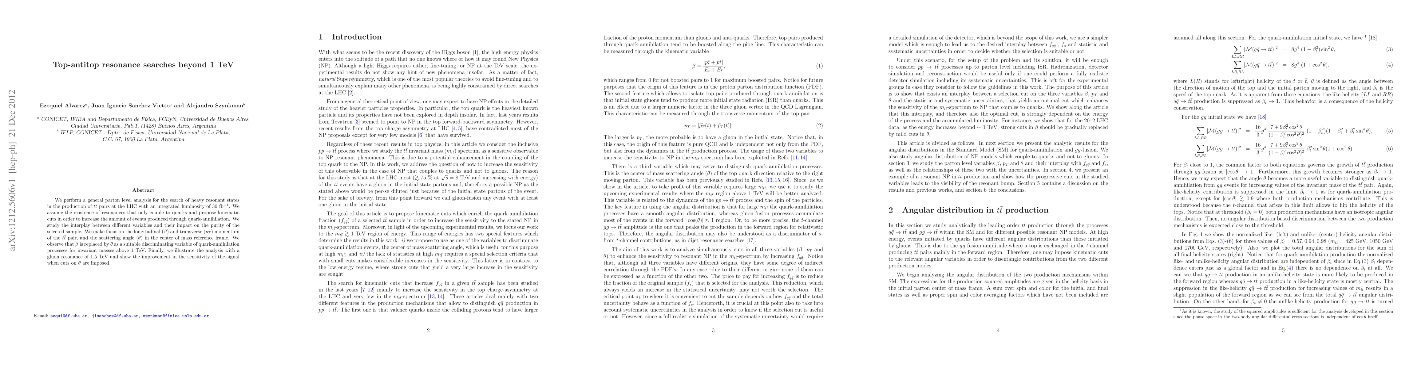 We perform a general parton level analysis for the search of heavy resonant states in the production of top-antitop pairs at the LHC with an integrated luminosity of 30 fb^-1. We assume the existence of resonances that only couple to quarks and propose kinematic cuts in order to increase the amount of events produced through quark-annihilation. We study the interplay between different variables and their impact on the purity of the selected sample. We make focus on the longitudinal ($\beta$) and transverse ($p_T$) momentum of the top-antitop pair, and the scattering angle ($\theta$) in the center of mass reference frame. We observe that $\beta$ is replaced by $\theta$ as a suitable discriminating variable of quark-annihilation processes for invariant masses above 1 TeV. Finally, we illustrate the analysis with a gluon resonance of 1.5 TeV and show the improvement in the sensitivity of the signal when cuts on $\theta$ are imposed.