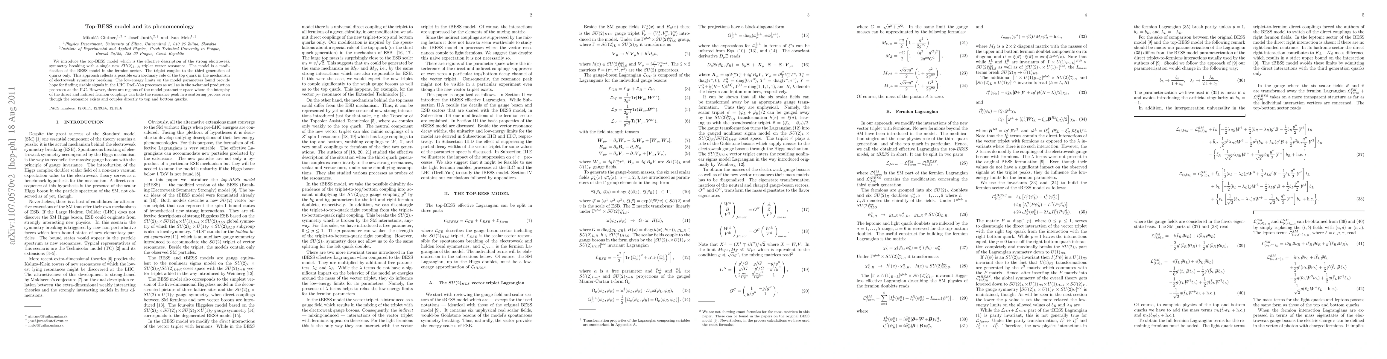 The top-BESS model and its phenomenology are formulated, providing a novel approach to understanding strong electroweak symmetry breaking with a focus on top quark interactions.