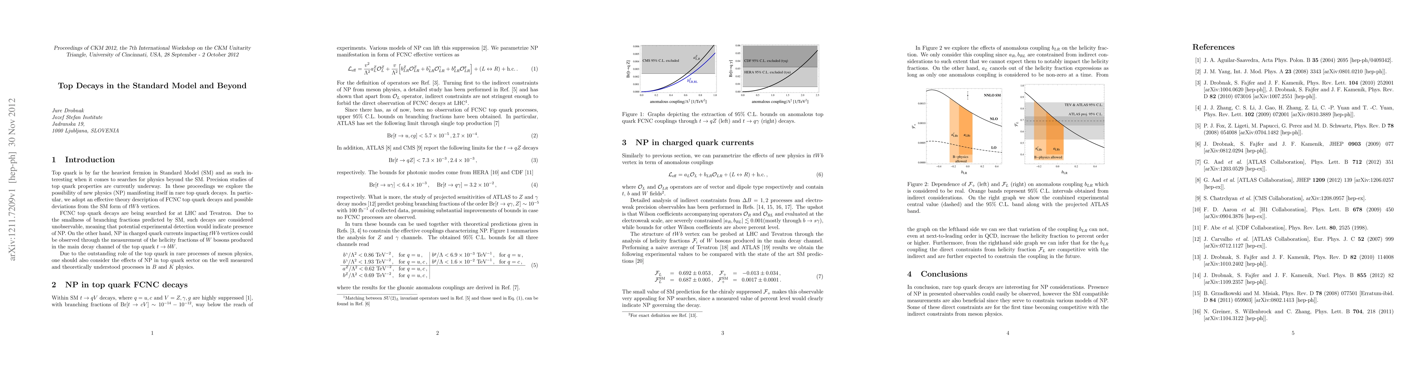 The research employs an effective theory description of FCNC t -> q V top quark decays and possible deviations from the SM form of tWb vertices.