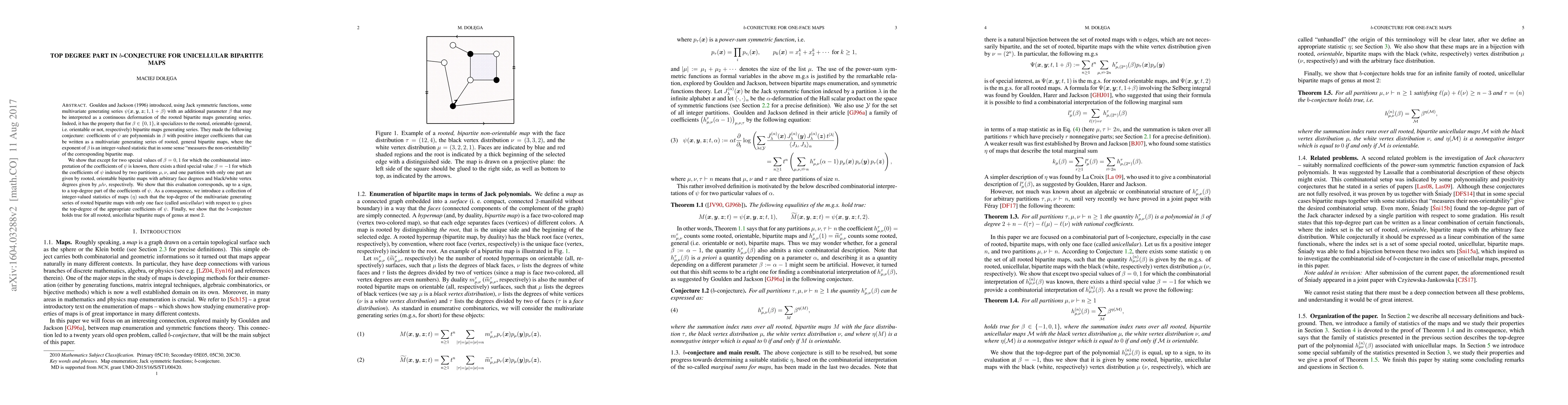 This paper proves the $b$-conjecture for rooted, unicellular bipartite maps by demonstrating that the top-degree part of the coefficients of a specific multivariate generating series $\psi$ corresponds to these maps, introducing a new statistic $\eta$ in the process. It confirms the conjecture for maps of genus up to $2$.
