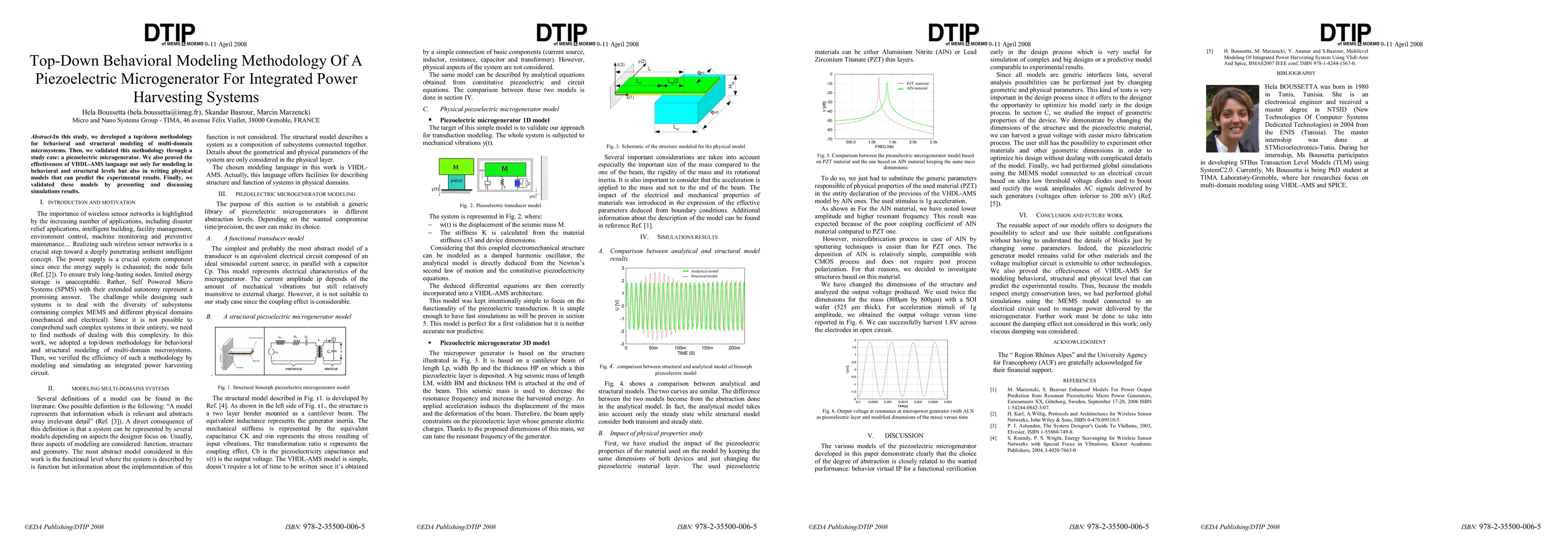 In this study, we developed a top/down methodology for behavioral and structural modeling of multi-domain microsystems. Then, we validated this methodology through a study case : a piezoelectric microgenerator. We also proved the effectiveness of VHDL-AMS language not only for modeling in behavioral and structural levels but also in writing physical models that can predict the experimental results. Finally, we validated these models by presenting and discussing simulations results.