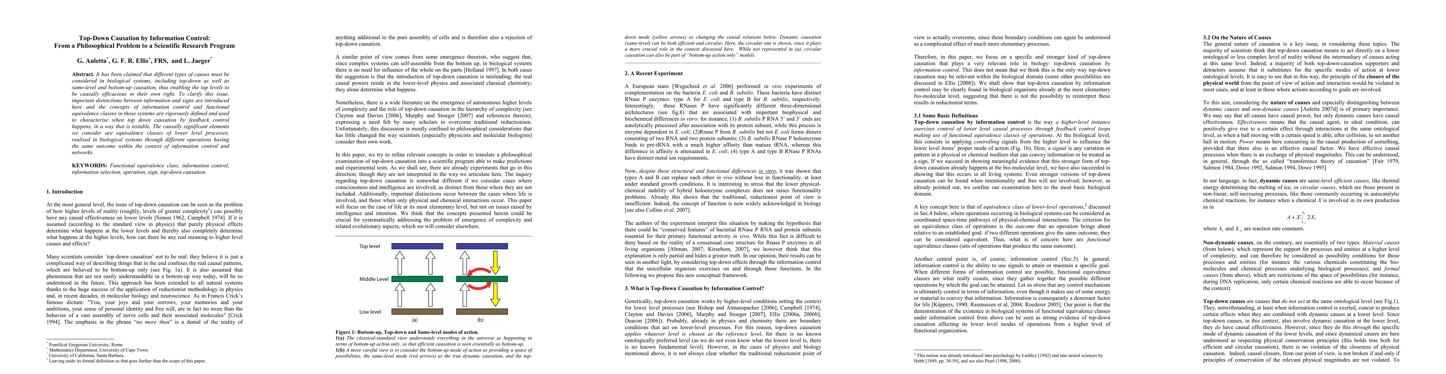 This paper explores the concept of top-down causation in biological systems, distinguishing between information and signs to define information control and functional equivalence classes. It proposes a framework for understanding and testing top-down causation through feedback mechanisms.