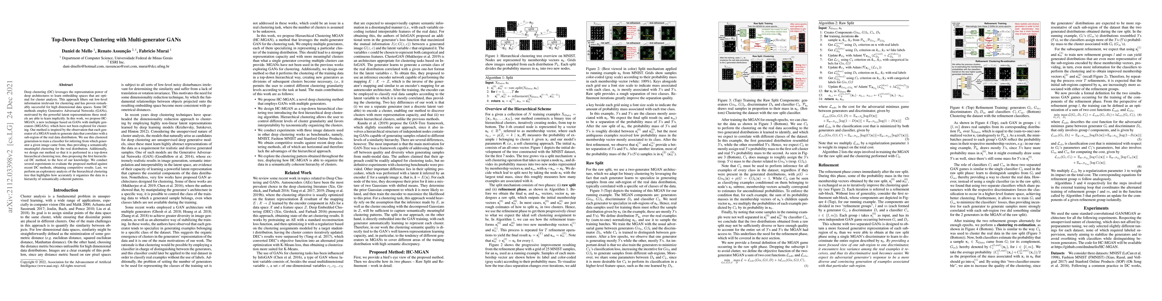 This paper introduces HC-MGAN, a new clustering method that uses multiple generators in GANs to create hierarchical clusters, achieving competitive results with existing deep clustering methods.