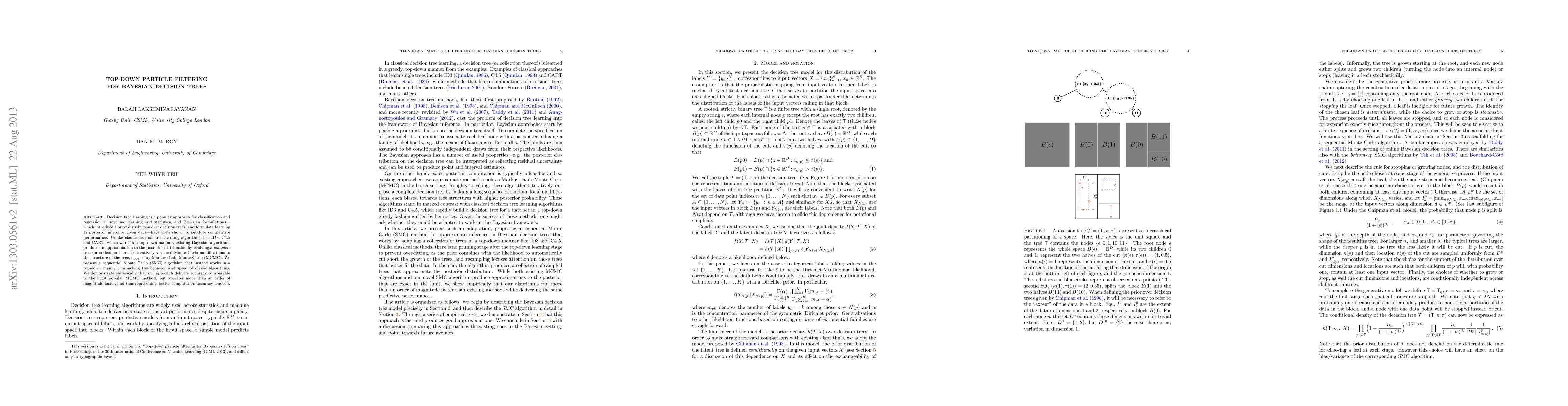This paper introduces a top-down particle filtering method for learning Bayesian decision trees, achieving comparable accuracy to MCMC methods but operating over an order of magnitude faster, thus offering a superior computation-accuracy tradeoff.