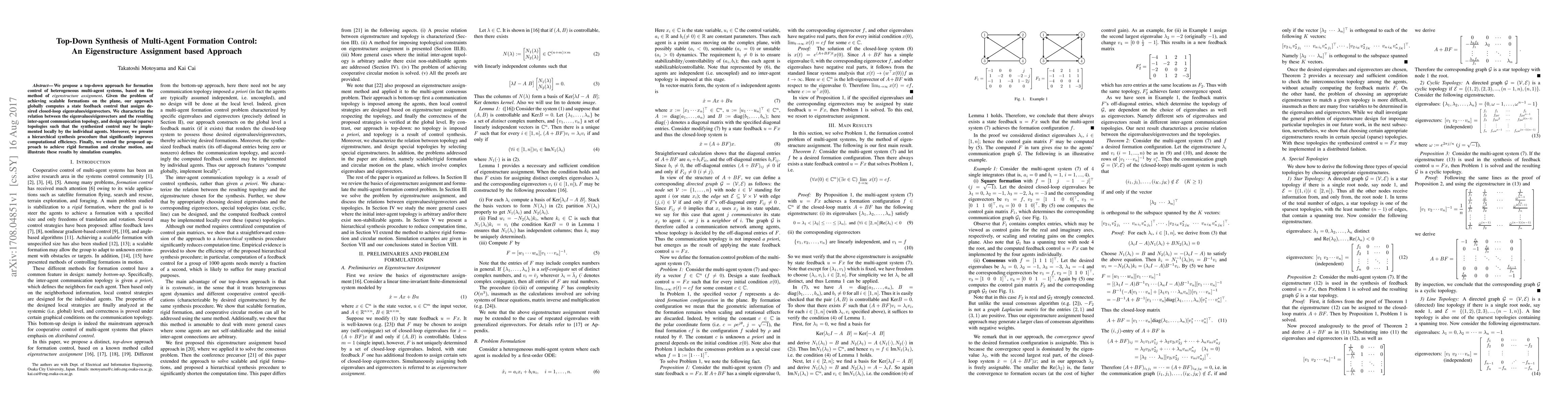 Researchers propose a top-down approach to formation control of multi-agent systems using eigenstructure assignment, enabling scalable formations on the plane with improved computational efficiency.