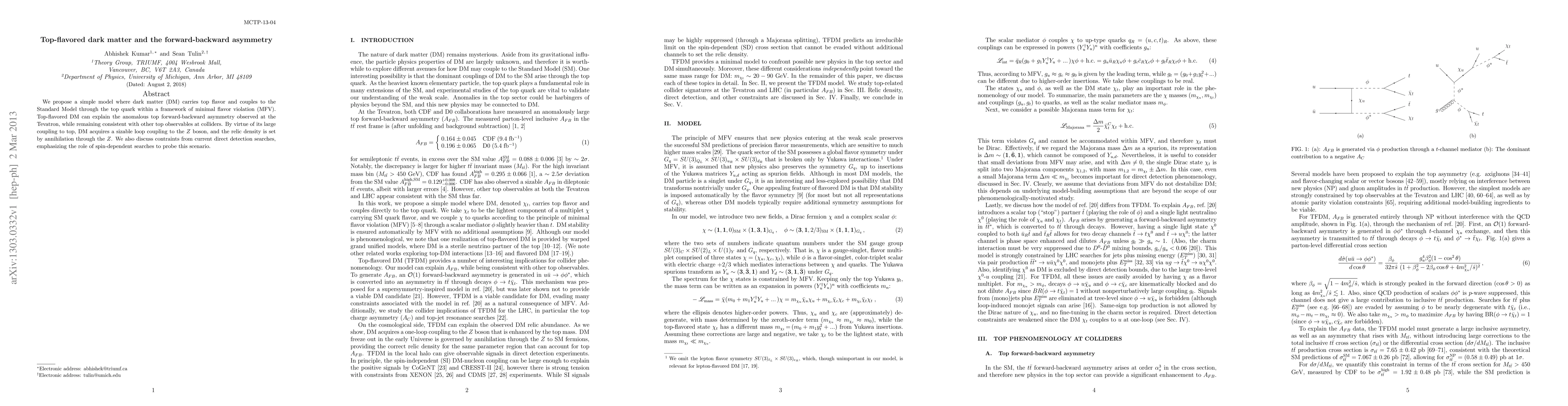 We propose a simple model where dark matter (DM) carries top flavor and couples to the Standard Model through the top quark within a framework of minimal flavor violation (MFV). Top-flavored DM can explain the anomalous top forward-backward asymmetry observed at the Tevatron, while remaining consistent with other top observables at colliders. By virtue of its large coupling to top, DM acquires a sizable loop coupling to the Z boson, and the relic density is set by annihilation through the Z. We also discuss contraints from current direct detection searches, emphasizing the role of spin-dependent searches to probe this scenario.
