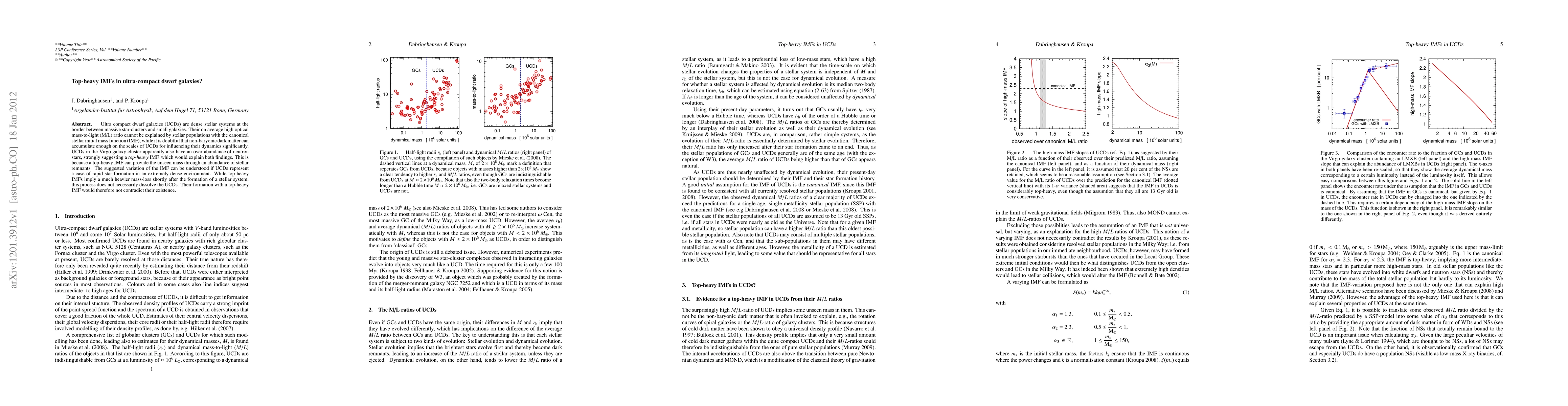 This paper investigates ultra compact dwarf galaxies (UCDs) and suggests that their high mass-to-light ratio and over-abundance of neutron stars may be explained by a top-heavy initial mass function (IMF), implying rapid star formation in dense environments. This top-heavy IMF could account for the unseen mass through stellar remnants, without contradicting the stability of UCDs.