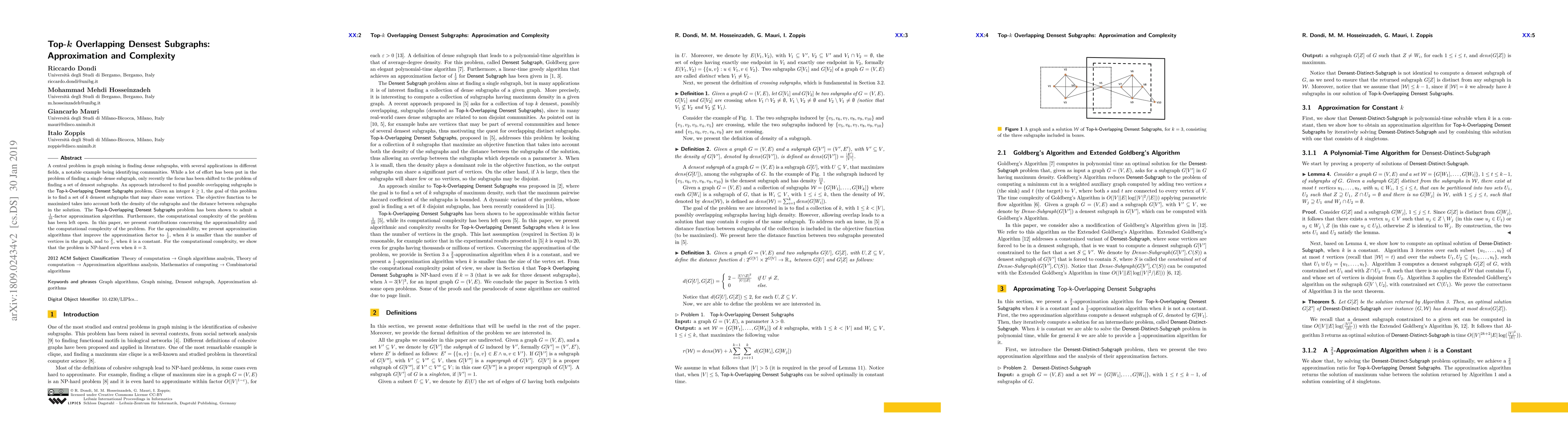 This paper addresses the Top-k Overlapping Densest Subgraphs problem, focusing on finding k densest overlapping subgraphs. It improves the approximation factor to 1/2 when k is bounded by the vertex set and to 2/3 when k is constant. Additionally, it proves the problem is NP-hard even for k=3.