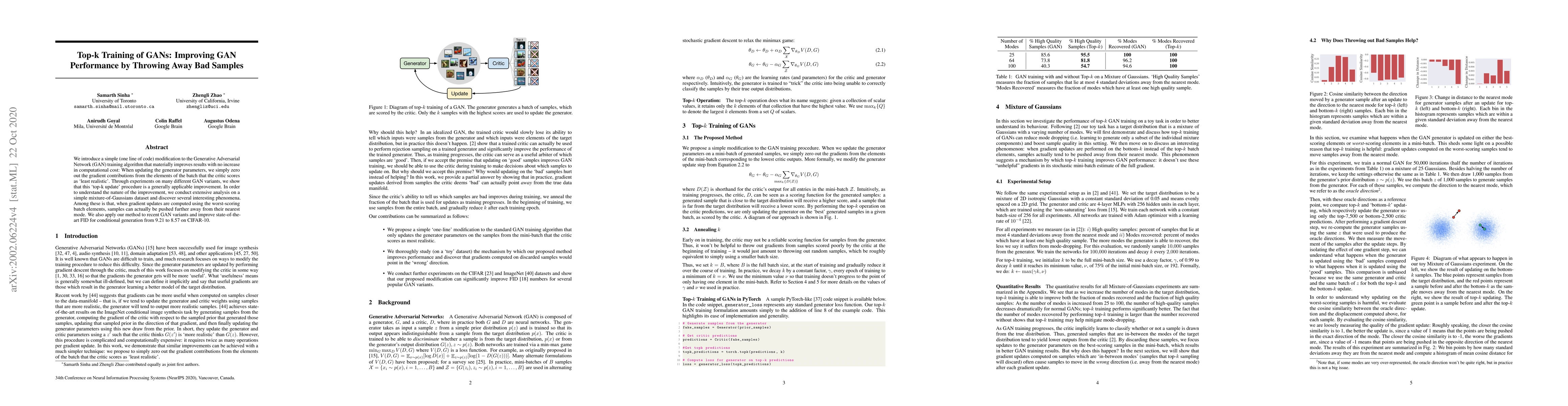We introduce a simple (one line of code) modification to the Generative Adversarial Network (GAN) training algorithm that materially improves results with no increase in computational cost: When updating the generator parameters, we simply zero out the gradient contributions from the elements of the batch that the critic scores as `least realistic'. Through experiments on many different GAN variants, we show that this `top-k update' procedure is a generally applicable improvement. In order to understand the nature of the improvement, we conduct extensive analysis on a simple mixture-of-Gaussians dataset and discover several interesting phenomena. Among these is that, when gradient updates are computed using the worst-scoring batch elements, samples can actually be pushed further away from their nearest mode. We also apply our method to recent GAN variants and improve state-of-the-art FID for conditional generation from 9.21 to 8.57 on CIFAR-10.