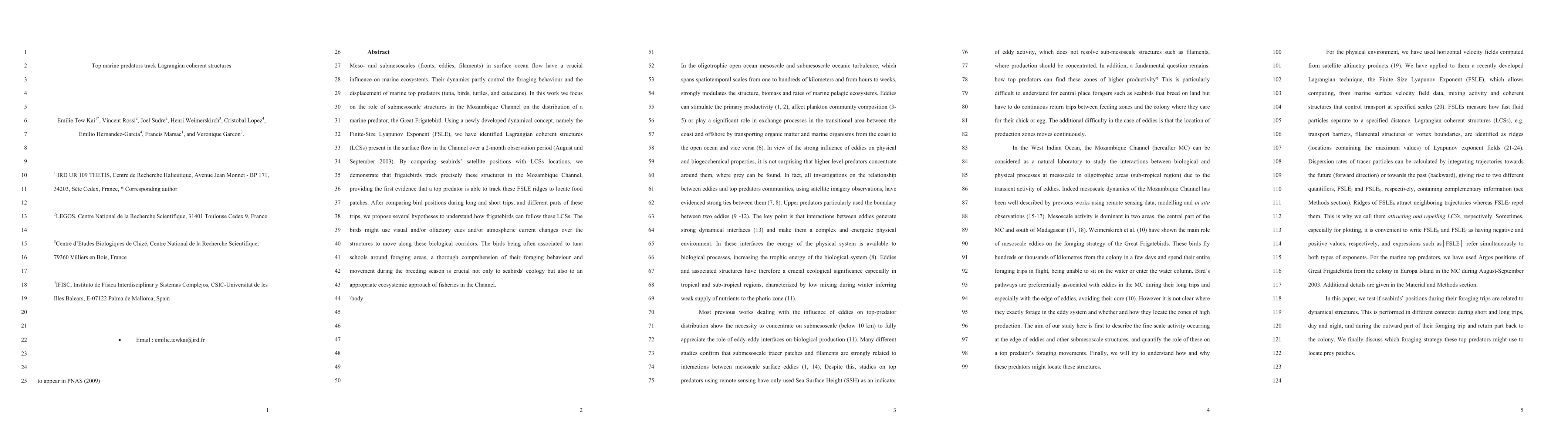 Researchers found that Great Frigatebirds in the Mozambique Channel track Lagrangian coherent structures to locate food patches, providing evidence of top predators following biological corridors. This discovery sheds light on seabirds' foraging behavior and has implications for ecosystem management and fisheries in the Channel.