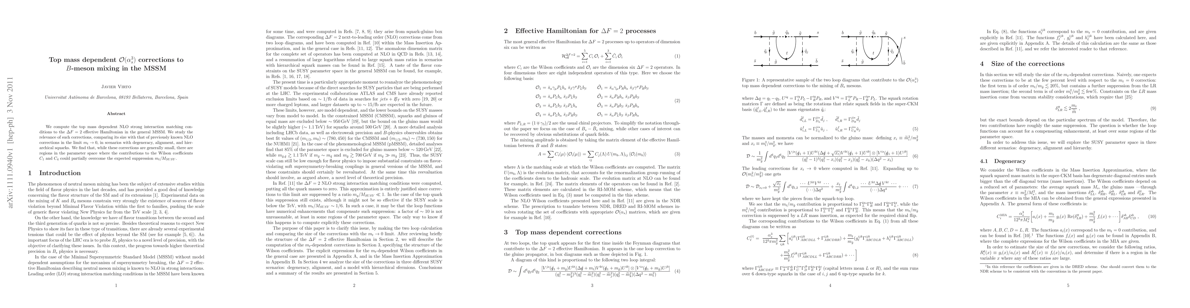 This paper calculates the top mass-dependent next-to-leading order (NLO) strong interaction corrections to B-meson mixing in the MSSM, finding that while generally small, these corrections can significantly impact the Wilson coefficients C1 and C4 in certain regions of the parameter space.