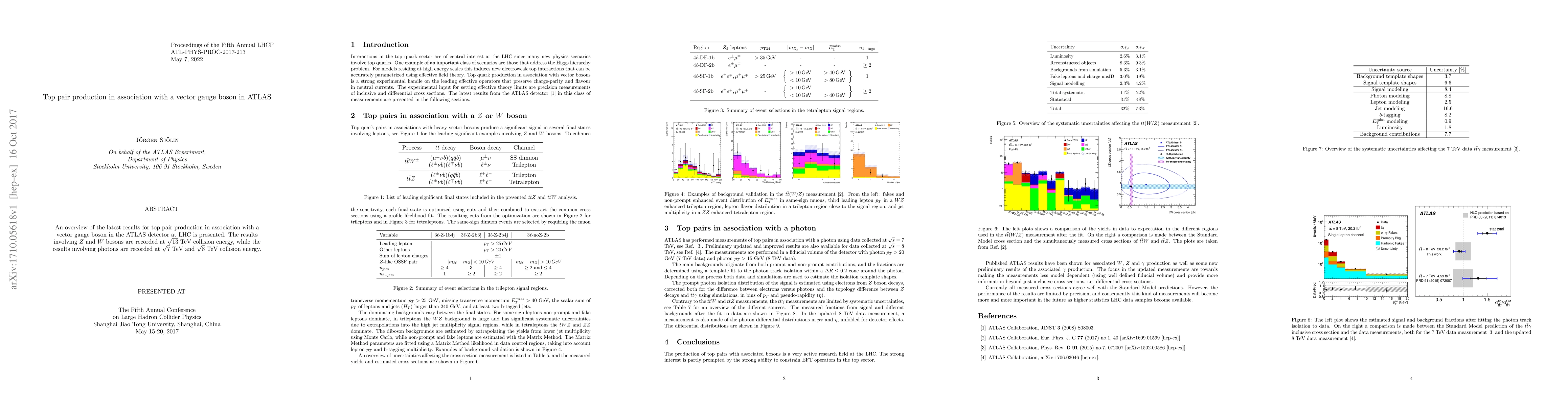 This paper summarizes recent findings on top pair production in association with vector gauge bosons, including $Z$ and $W$ bosons at $\sqrt{13}$ TeV, and photons at $\sqrt{7}$ and $\sqrt{8}$ TeV collision energies, using the ATLAS detector at the LHC.