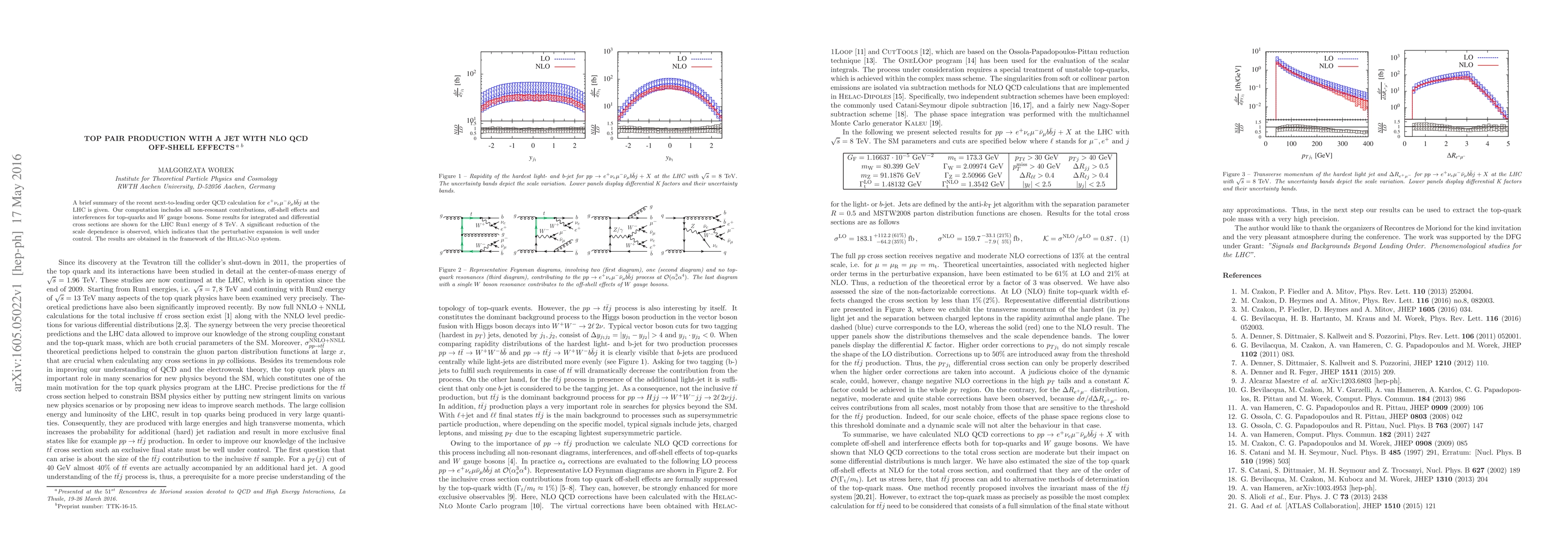 A brief summary of the recent next-to-leading order QCD calculation for e+ ve mu- v_mu bb~ j at the LHC is given. Our computation includes all non-resonant contributions, off-shell effects and interferences for top-quarks and W gauge bosons. Some results for integrated and differential cross sections are shown for the LHC Run1 energy of 8 TeV. A significant reduction of the scale dependence is observed, which indicates that the perturbative expansion is well under control. The results are obtained in the framework of the HELAC-NLO system.