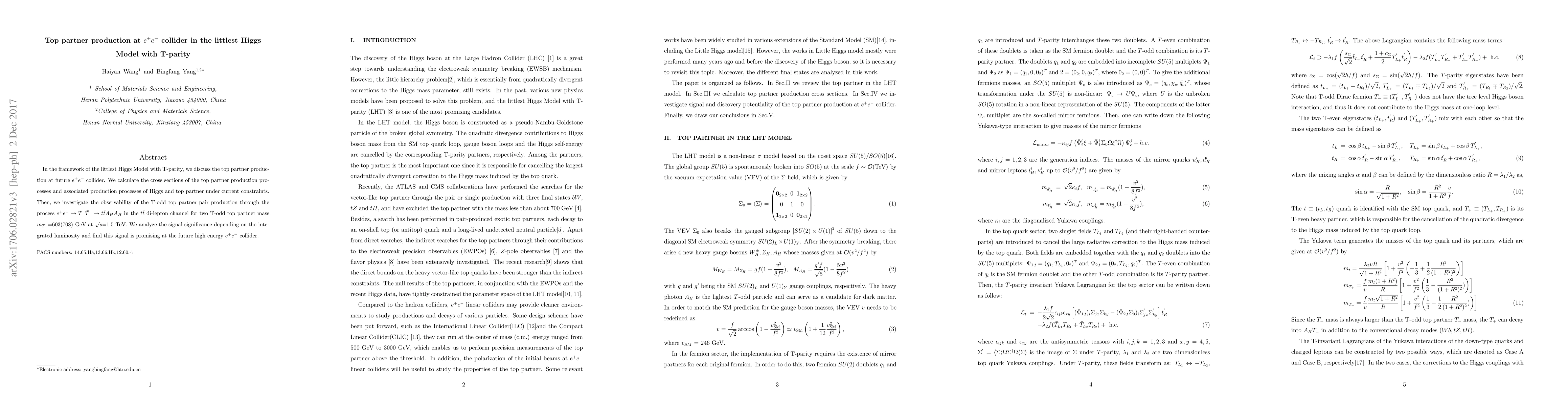 This paper investigates top partner production in the littlest Higgs Model with T-parity at future $e^{+}e^{-}$ colliders, calculating cross sections and analyzing the observability of T-odd top partner pairs in the $t\bar{t}$ di-lepton channel, finding promising signal significance at $\sqrt{s} = 1.5$ TeV.