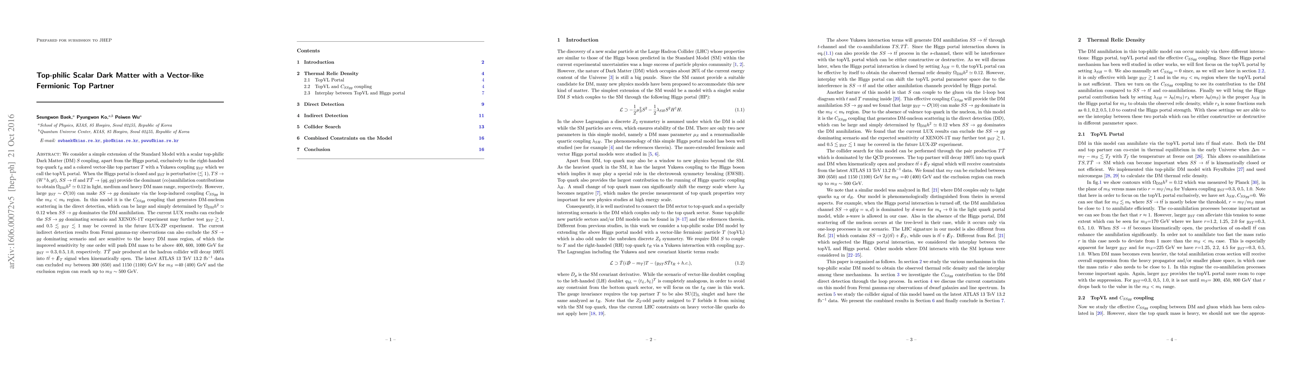 Yukawa coupling $y_{ST}$ which we call the topVL portal. When the Higgs portal