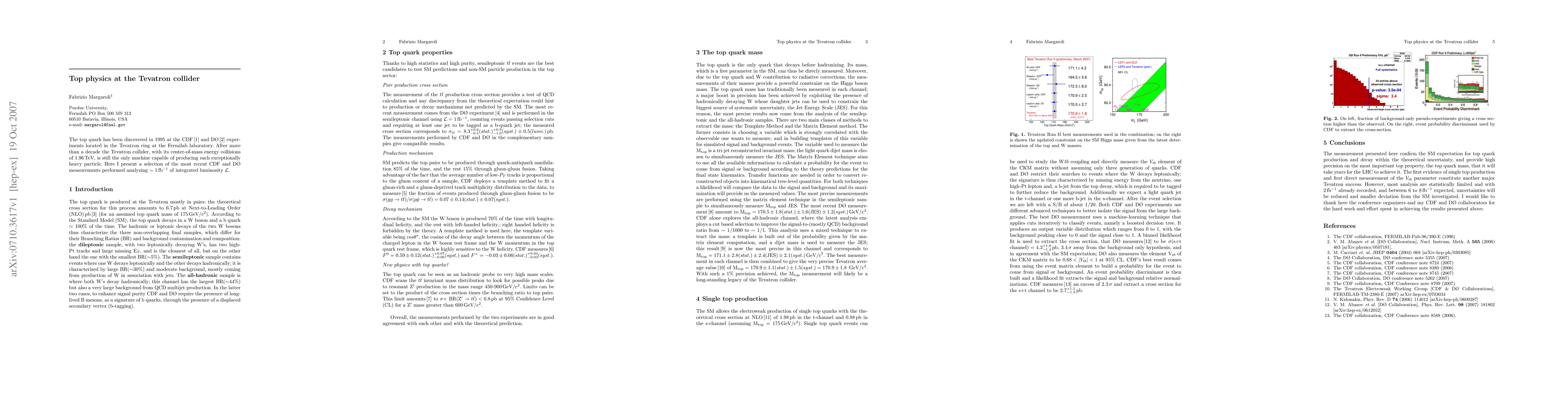 Summary: This paper reviews recent measurements from the CDF and DO experiments at the Tevatron collider, focusing on the top quark, which was discovered in 1995, and analyzing data from 1 fb-1 of integrated luminosity to provide updated insights into this heavy particle.
