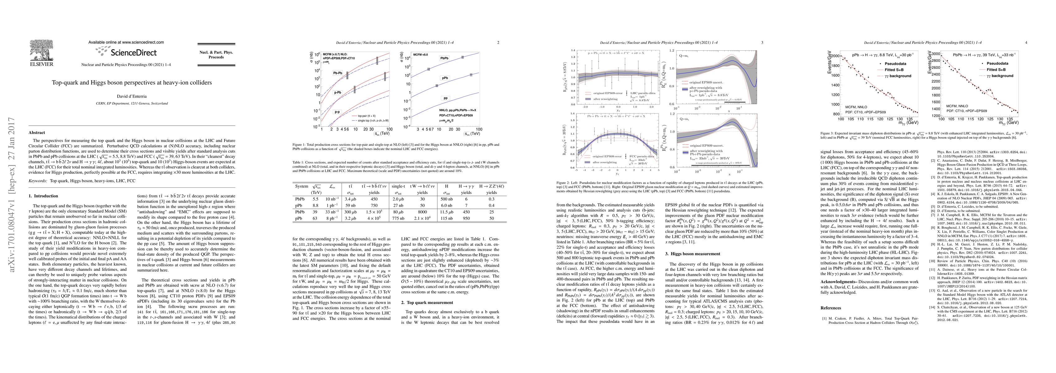 The perspectives for measuring the top quark and the Higgs boson in nuclear collisions at the LHC and Future Circular Collider (FCC) are summarized. Perturbative QCD calculations at (N)NLO accuracy, including nuclear parton distribution functions, are used to determine their cross sections and visible yields after standard analysis cuts in PbPb and pPb collisions at the LHC ($\sqrt{s_{NN}}$ = 5.5, 8.8 TeV) and FCC ($\sqrt{s_{NN}}$ = 39, 63 TeV). In their "cleanest" decay channels, $\rm t\bar{t}\to b\bar{b} 2 \ell 2\nu$ and $\rm H\to \gamma\gamma, 4\ell$, about 10$^3$ ($10^5$) top-quark and 10 (10$^3$) Higgs-boson events are expected at the LHC (FCC) for their total nominal integrated luminosities. Whereas the $\rm t \bar{t}$ observation is clearcut at both colliders, evidence for Higgs production, perfectly possible at the FCC, requires integrating $\times$30 more luminosities at the LHC.