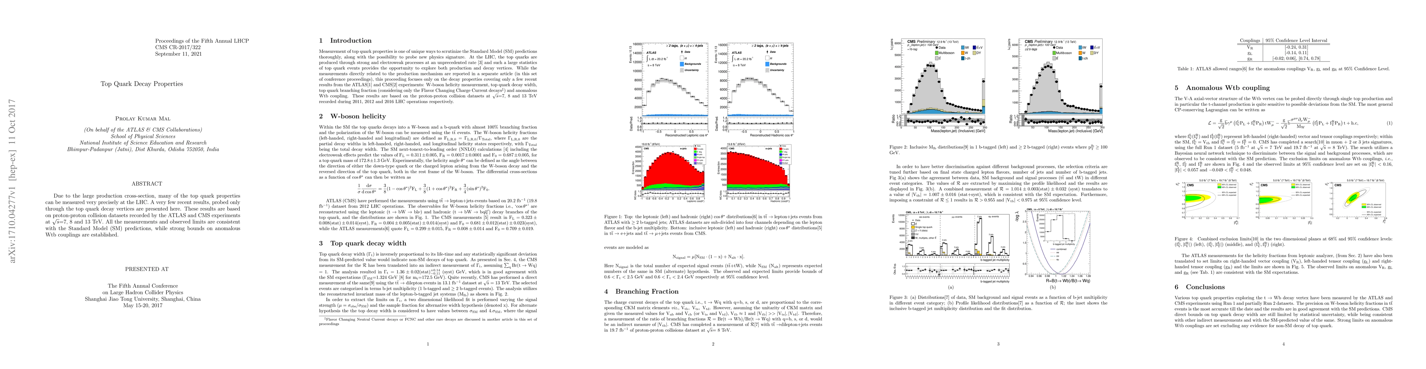 Due to the large production cross-section, many of the top quark properties can be measured very precisely at the LHC. A very few recent results, probed only through the top quark decay vertices are presented here. These results are based on proton-proton collision datasets recorded by the ATLAS and CMS experiments at sqrt(s)=7, 8 and 13 TeV. All the measurements and observed limits are consistent with the Standard Model (SM) predictions, while strong bounds on anomalous Wtb couplings are established.