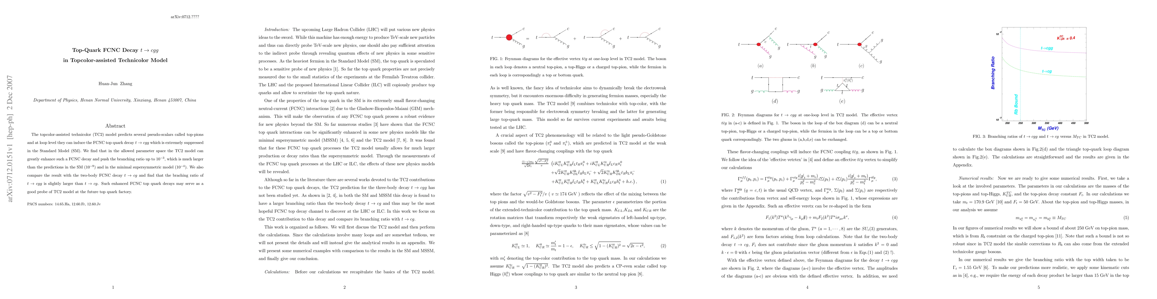 The topcolor-assisted technicolor (TC2) model predicts significant enhancement of the FCNC decay t->cgg, with a branching ratio up to 10^{-3}, surpassing both the Standard Model and minimal supersymmetric model predictions. This enhanced decay may serve as a probe for the TC2 model at future experiments.