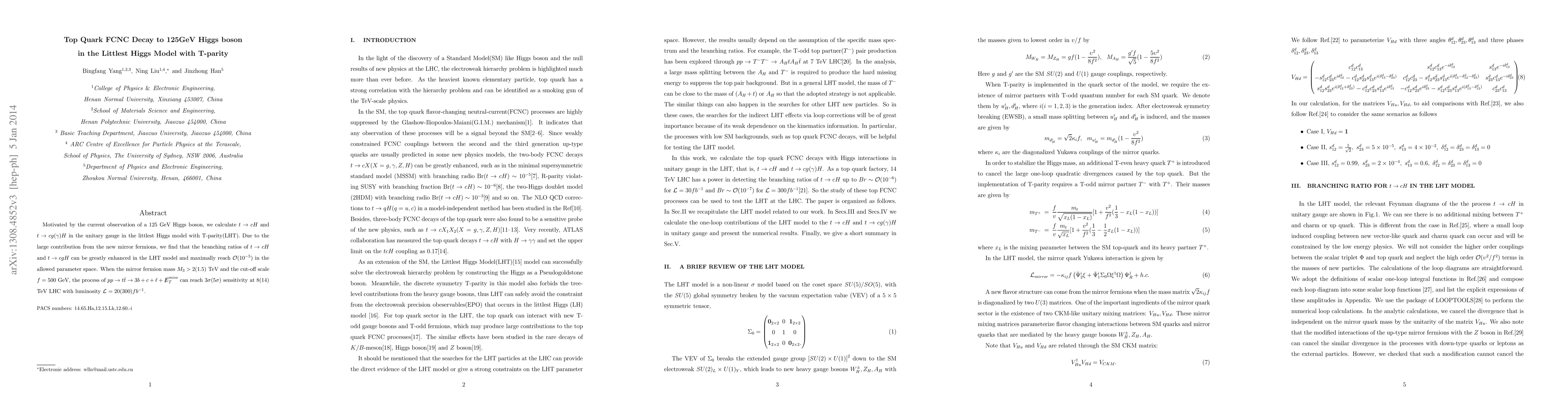 The Littlest Higgs Model with T-parity predicts a significant enhancement in top quark FCNC decays to the 125 GeV Higgs boson, potentially reaching a $3 ext{ } ext{°}$ sensitivity at the LHC.