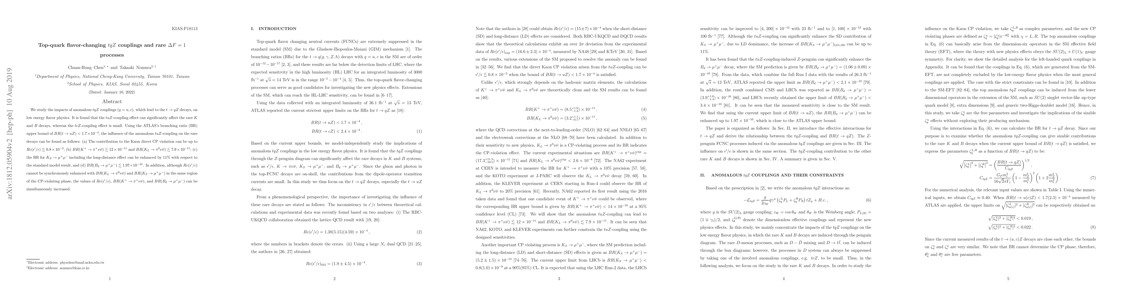 We model-independently study the impacts of anomalous $tqZ$ couplings ($q=u,c$), which lead to the $t\to q Z$ decays, on low energy flavor physics. It is found that the $tuZ$-coupling effect can significantly affect the rare $K$ and $B$ decays, whereas the $tcZ$-coupling effect is small. Using the ATLAS's branching ratio (BR) upper bound of $BR(t\to uZ) < 1.7\times 10^{-4}$, the influence of the anomalous $tuZ$-coupling on the rare decays can be found as follows: (a) The contribution to the Kaon direct CP violation can be up to $Re(\epsilon'/\epsilon) \lesssim 0.8 \times 10^{-3}$; (b) $BR(K^+\to \pi^+ \nu \bar \nu) \lesssim 12 \times 10^{-11}$ and $BR(K_L \to \pi^0 \nu\bar \nu)\lesssim 7.9 \times 10^{-11}$; (c) the BR for $K_S \to \mu^+ \mu^-$ including the long-distance effect can be enhanced by $11\%$ with respect to the standard model result, and (d) $BR(B_d \to \mu^+ \mu^-) \lesssim 1.97 \times 10^{-10}$. In addition, although $Re(\epsilon'/\epsilon)$ cannot be synchronously enhanced with $BR(K_L\to \pi^0 \nu \bar\nu)$ and $BR(K_S\to \mu^+ \mu^-)$ in the same region of the CP-violating phase, the values of $Re(\epsilon'/\epsilon)$, $BR(K^+ \to \pi^+ \nu \bar\nu)$, and $BR(B_d \to \mu^+ \mu^-)$ can be simultaneously increased.