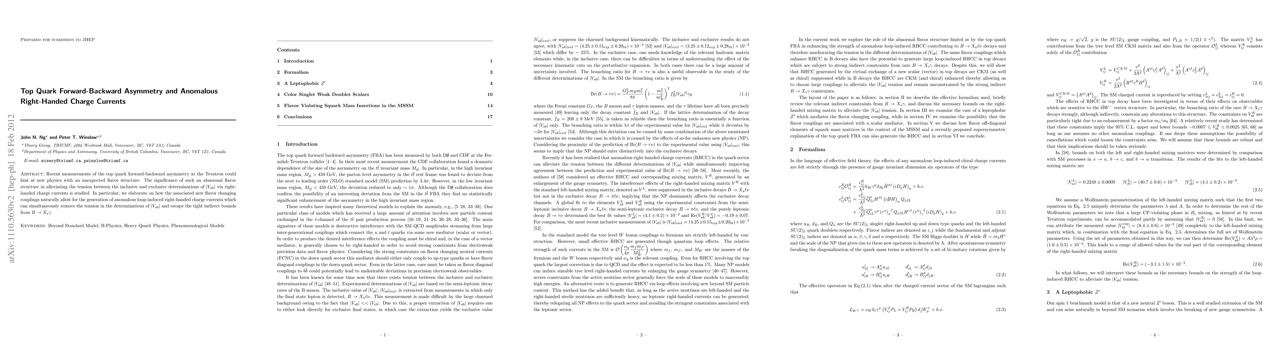 Recent measurements of the top quark forward-backward asymmetry at the Tevatron could hint at new physics with an unexpected flavor structure. The significance of such an abnormal flavor structure in alleviating the tension between the various determinations of $|V_{ub}|$ via right-handed charge currents is studied. In particular, we elaborate on how the associated new flavor changing couplings naturally allow for the generation of anomalous loop-induced right-handed charge currents which can simultaneously remove the tension in the determinations of $|V_{ub}|$ and escape the tight indirect bounds from $B \ra X_s \gamma$.