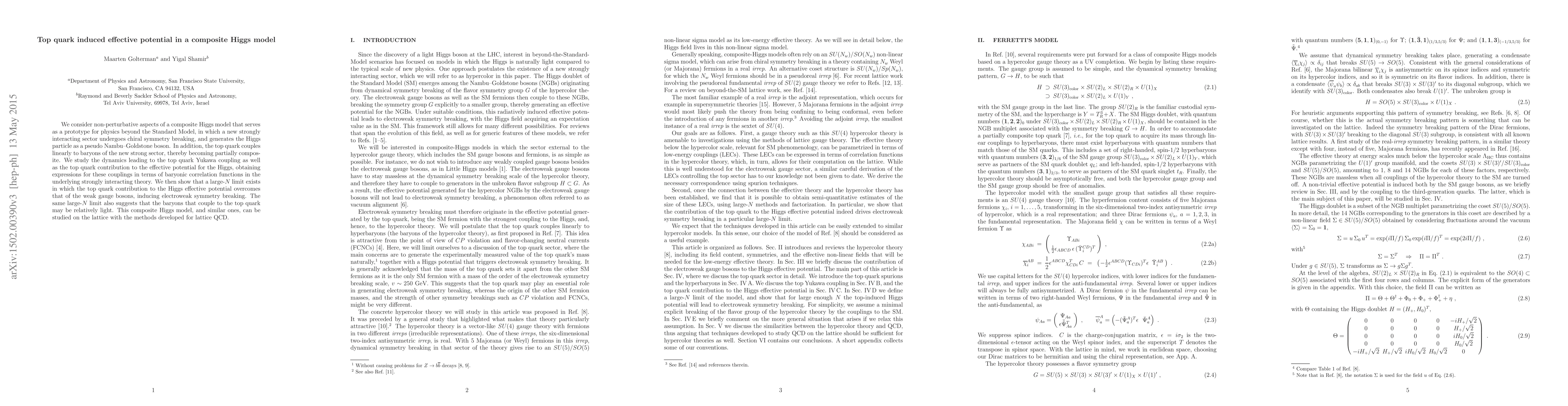 This paper explores a composite Higgs model where the top quark couples to baryons in a new strongly interacting sector, leading to a large-N limit that suggests electroweak symmetry breaking and potentially light baryon masses.