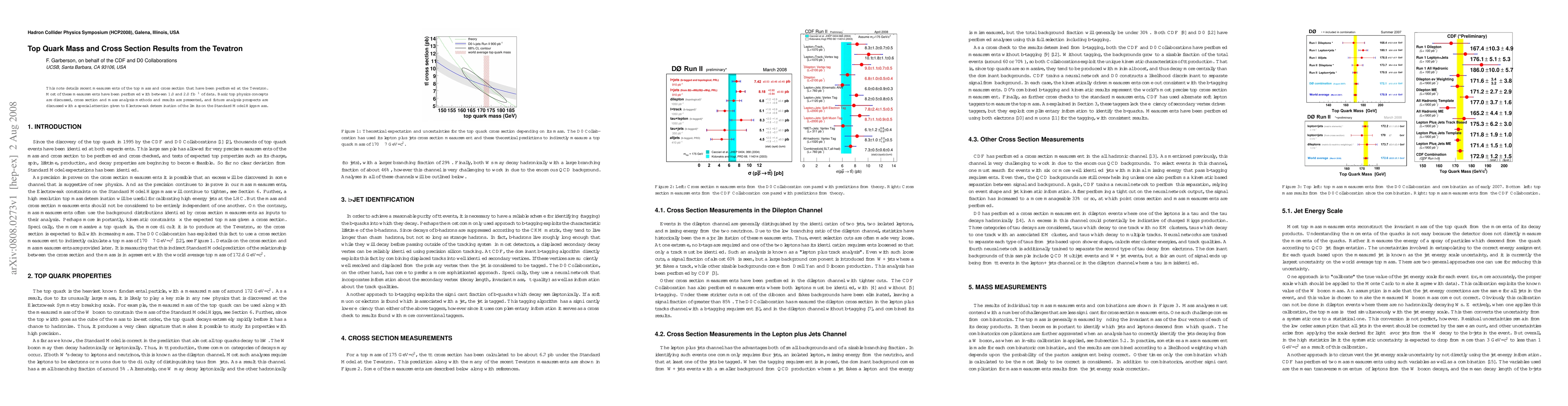 This note details recent measurements of the top mass and cross section that have been performed at the Tevatron. Most of these measurements have been performed with between 1.0 and 2.0 fb-1 of data. Basic top physics concepts are discussed, cross section and mass analysis methods and results are presented, and future analysis prospects are discussed with a special attention given to Electroweak determination of the limits on the Standard Model Higgs mass.