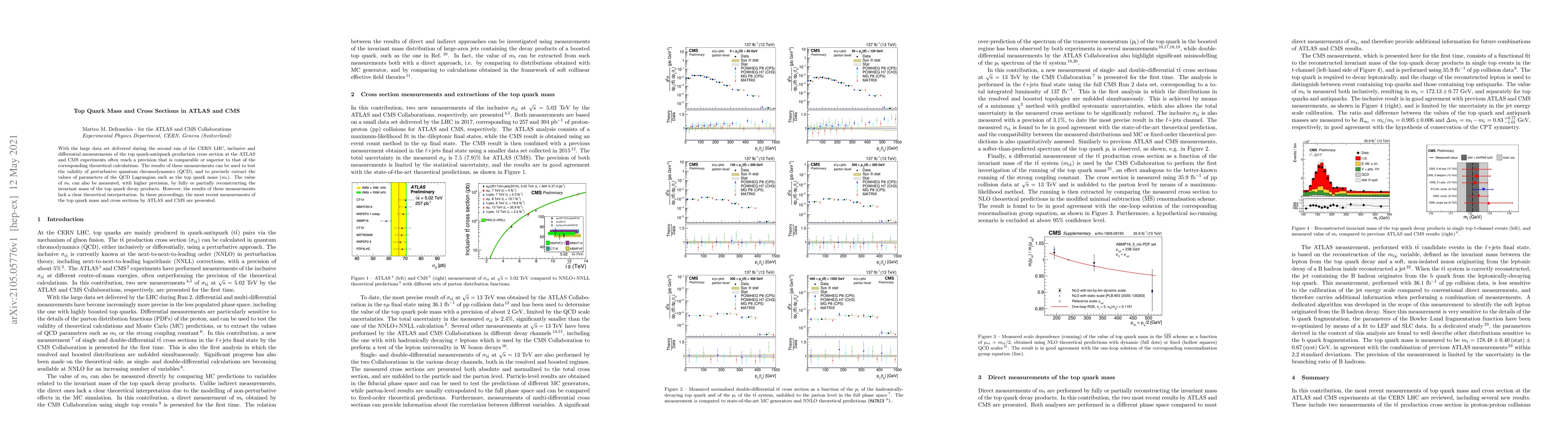 This paper presents the latest measurements of top quark mass and cross sections from the ATLAS and CMS experiments at the LHC, highlighting their precision and use in testing perturbative QCD and extracting QCD parameters. Despite high precision, the results lack clear theoretical interpretation.