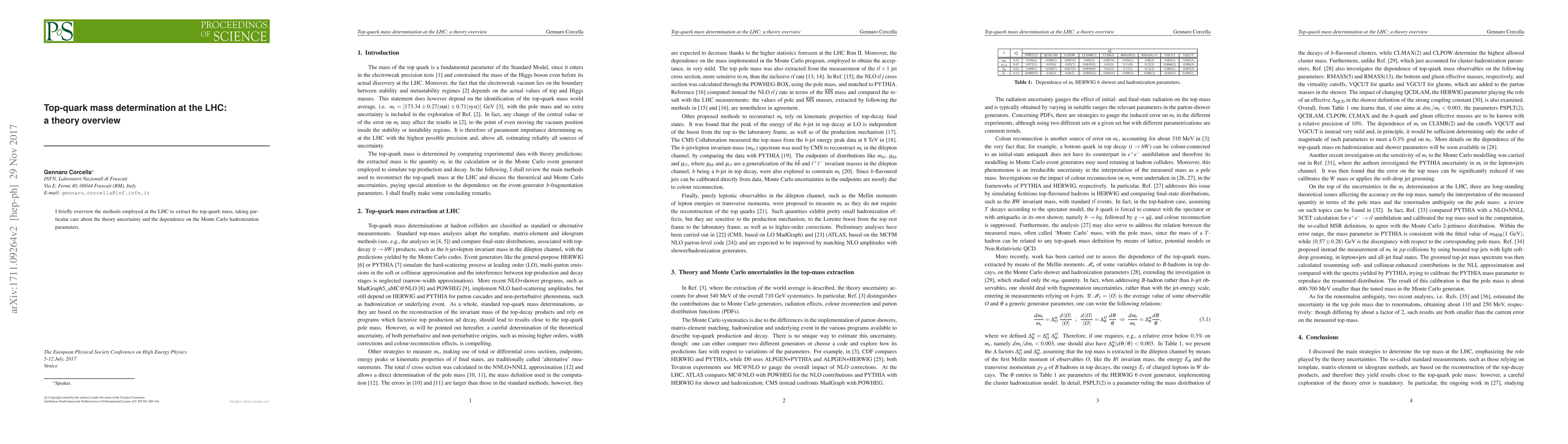 I briefly overview the methods employed at the LHC to extract the top-quark mass, taking particular care about the theory uncertainty and the dependence on the Monte Carlo hadronization parameters.