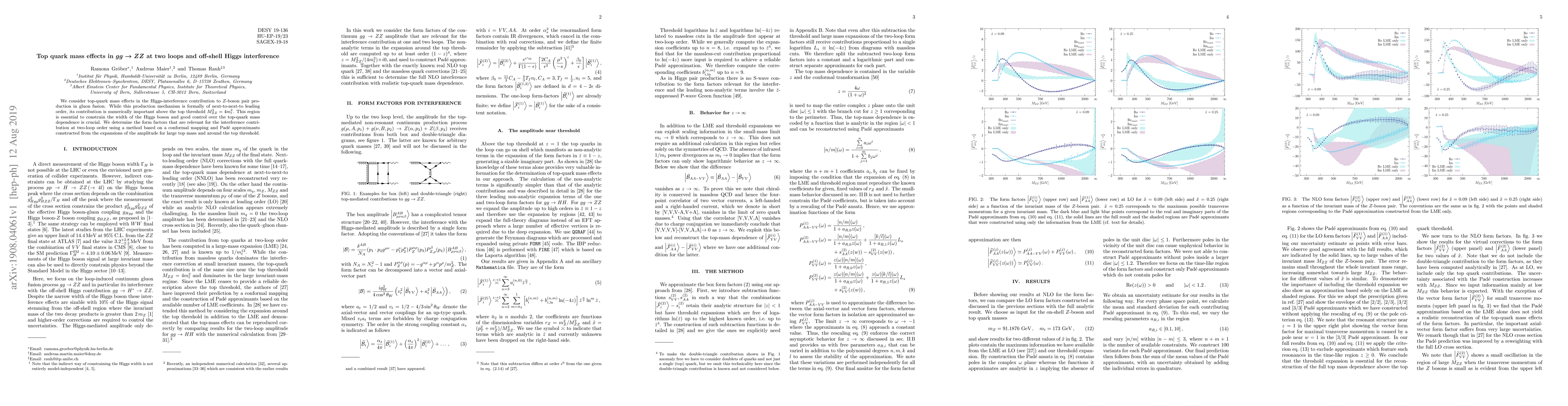 This paper investigates the top-quark mass effects on the Higgs-interference contribution to $Z$-boson pair production via gluon fusion, focusing on the region above the top threshold. It determines the relevant two-loop form factors using conformal mapping and Padé approximants to ensure precise control over the top-quark mass dependence, crucial for constraining the Higgs boson's width.