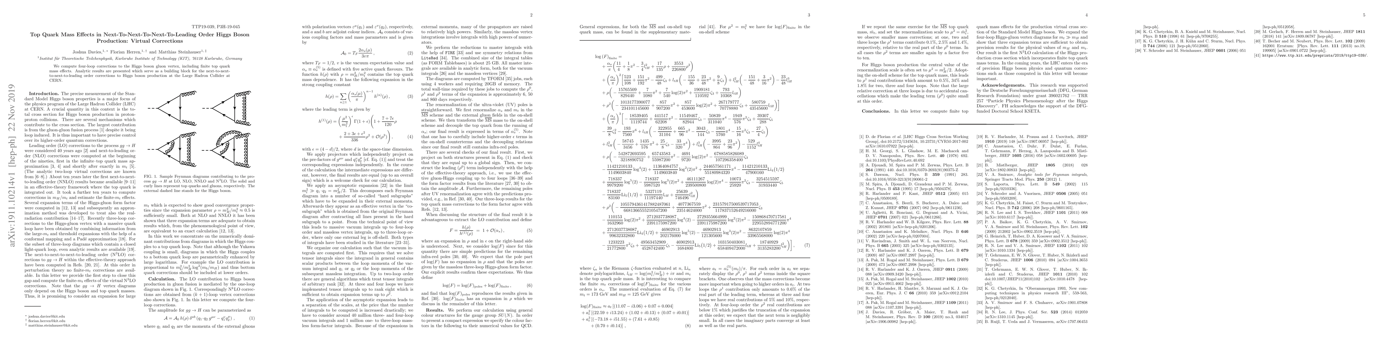 This paper calculates four-loop virtual corrections to the Higgs boson gluon vertex, incorporating finite top quark mass effects, providing essential results for next-to-next-to-next-to-leading order corrections in Higgs boson production at the LHC.