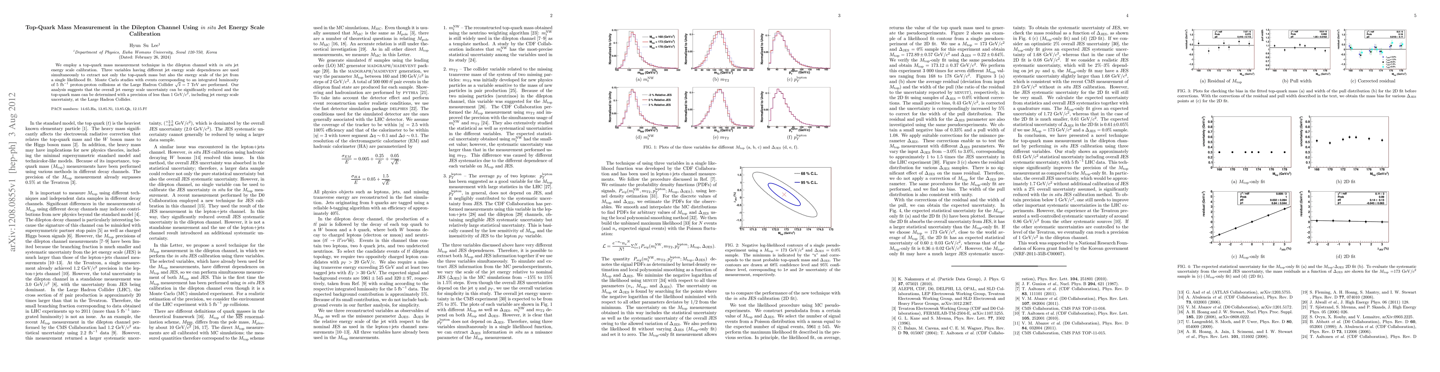 We employ a top-quark mass measurement technique in the dilepton channel with {\it in situ} jet energy scale calibration. Three variables having different jet energy scale dependences are used simultaneously to extract not only the top-quark mass but also the energy scale of the jet from a single likelihood fit. Monte Carlo studies with events corresponding to an integrated luminosity of 5 fb$^{-1}$ proton-proton collisions at the Large Hadron Collider $\sqrt{s} = 7$ TeV are performed. Our analysis suggests that the overall jet energy scale uncertainty can be significantly reduced and the top-quark mass can be determined with a precision of less than 1 GeV/c$^2$, including jet energy scale uncertainty, at the Large Hadron Collider.
