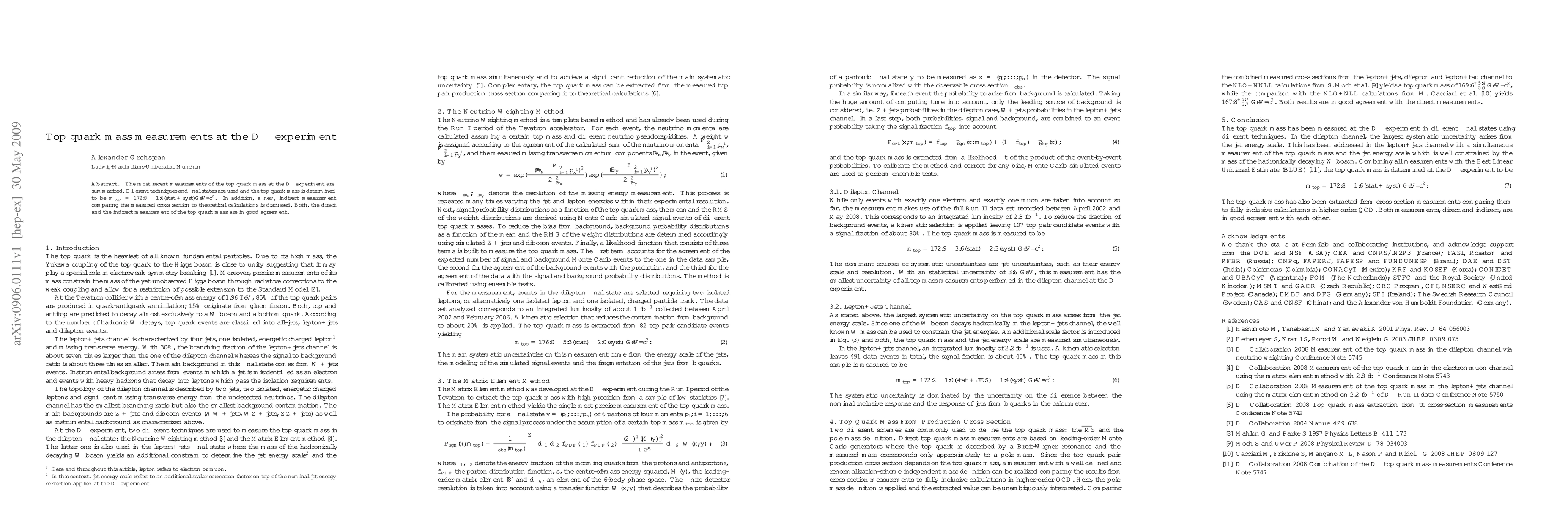 The D0 experiment reports a top quark mass of 172.8 ± 1.6 GeV/c² using various techniques and final states, with both direct and indirect measurements showing good agreement. An indirect measurement via cross-section comparison to theoretical calculations further supports this value.