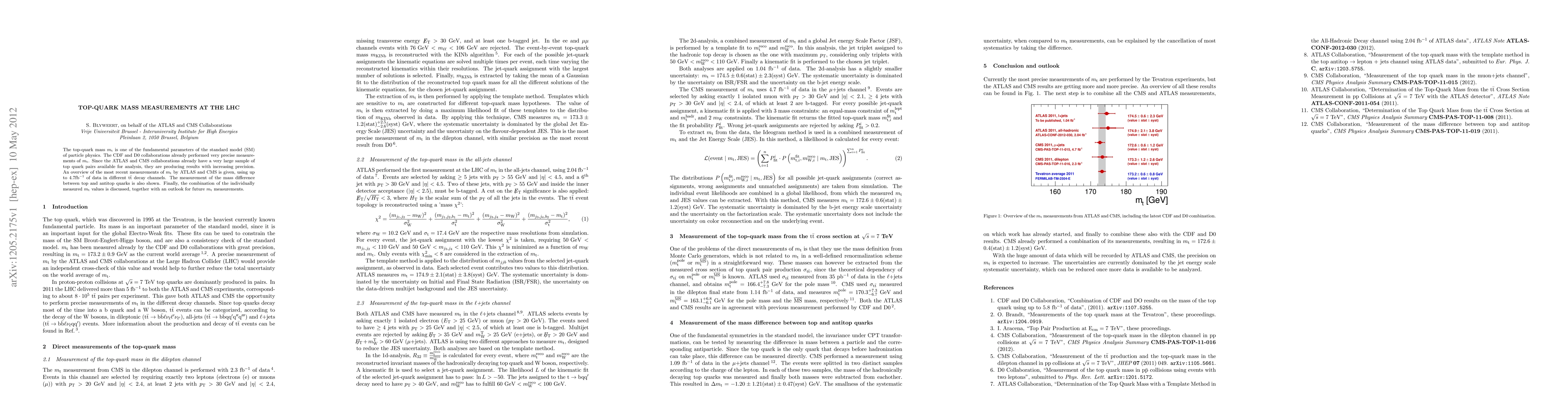 This paper reviews recent top-quark mass measurements by the ATLAS and CMS collaborations using up to 4.7 fb^-1 of data, highlighting precision improvements and the measurement of mass differences between top and antitop quarks, along with a discussion on future prospects.