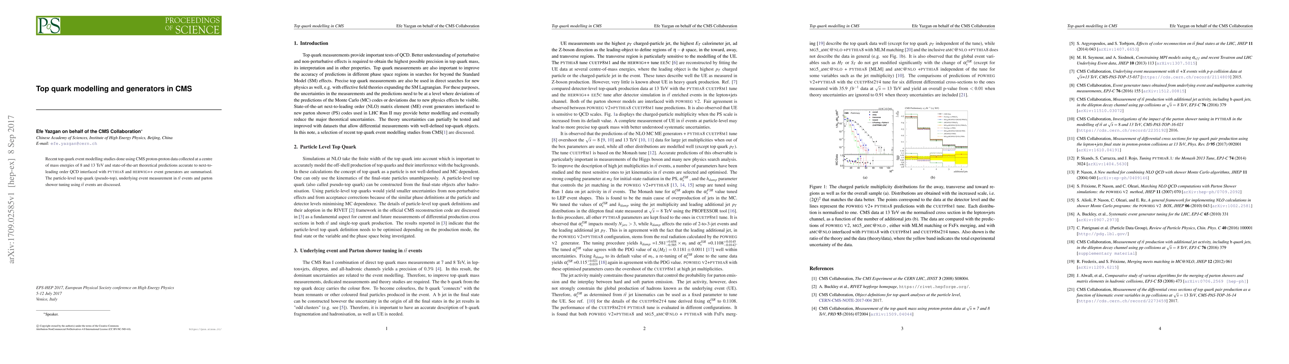 Researchers at CMS summarize key findings from top quark event modeling studies using data from 8 and 13 TeV collisions, including accurate theoretical predictions and parton shower tuning.